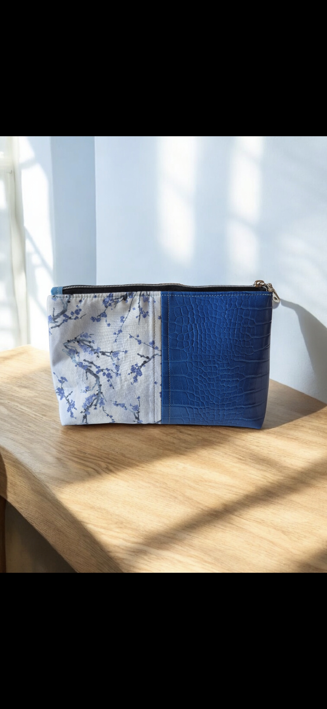 Elevate your organization with our handcrafted "Half & Half" pouch, a stunning study in contrast. This unique design merges the serene beauty of blue cherry blossom fabric on one side with the bold, textured grit of blue alligator vinyl on the other. Measuring a generous 10.5x7 inches, this oversized pouch is as versatile as it is striking—perfect as a high-end makeup bag, a tech organizer, or a standalone clutch. With its fusion of soft floral aesthetics and sleek faux-leather texture, this handmade original is built for those who appreciate craftsmanship with a modern twist.