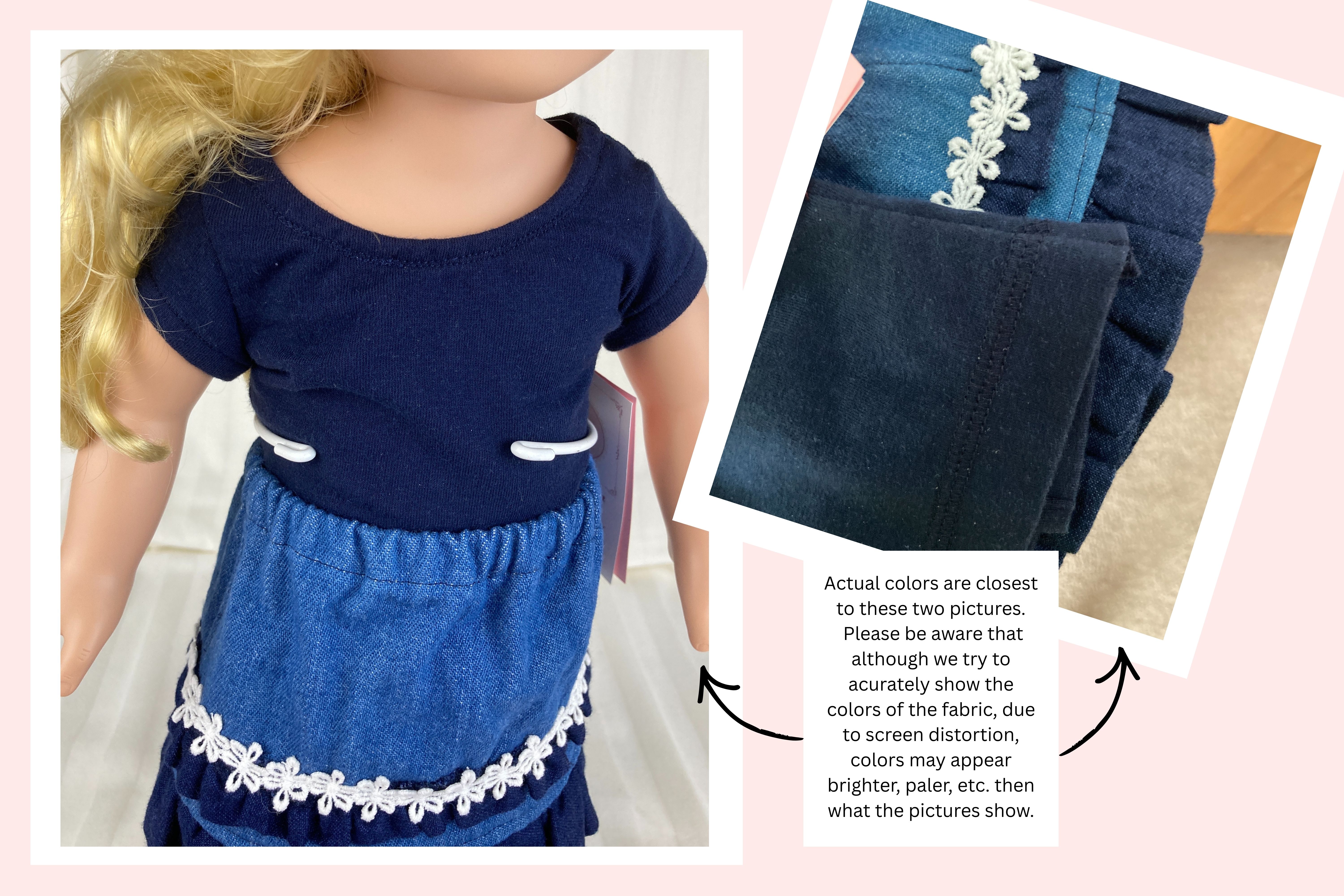 All our doll dresses are handmade by us using quality materials, and old fashioned industry, labor, skill and a passionate vision! ALL our 18 doll clothes have lined bodices unless specified and ALL our 18 doll clothes have finished seams either by multiple zigzagging or by enclosure; depending on the fabric and dress style, the skirts of our doll dresses are also often lined or have an attached petticoat (see individual listings). We strive to create 18 inch doll clothes that are realistic and cute/beautiful- clothes that last longer than fast fashion- clothes that maybe can even be handed down to future generations. A Yankee Doodle Darlings 18 inch doll dress is designed to fit well yet be easy to put on and take off. We try to sewn on all the little details such as buttons, beads, and trims for durability but at times must use a durable glue (see individual listings). Closures are hook and loop unless otherwise stated in listing.