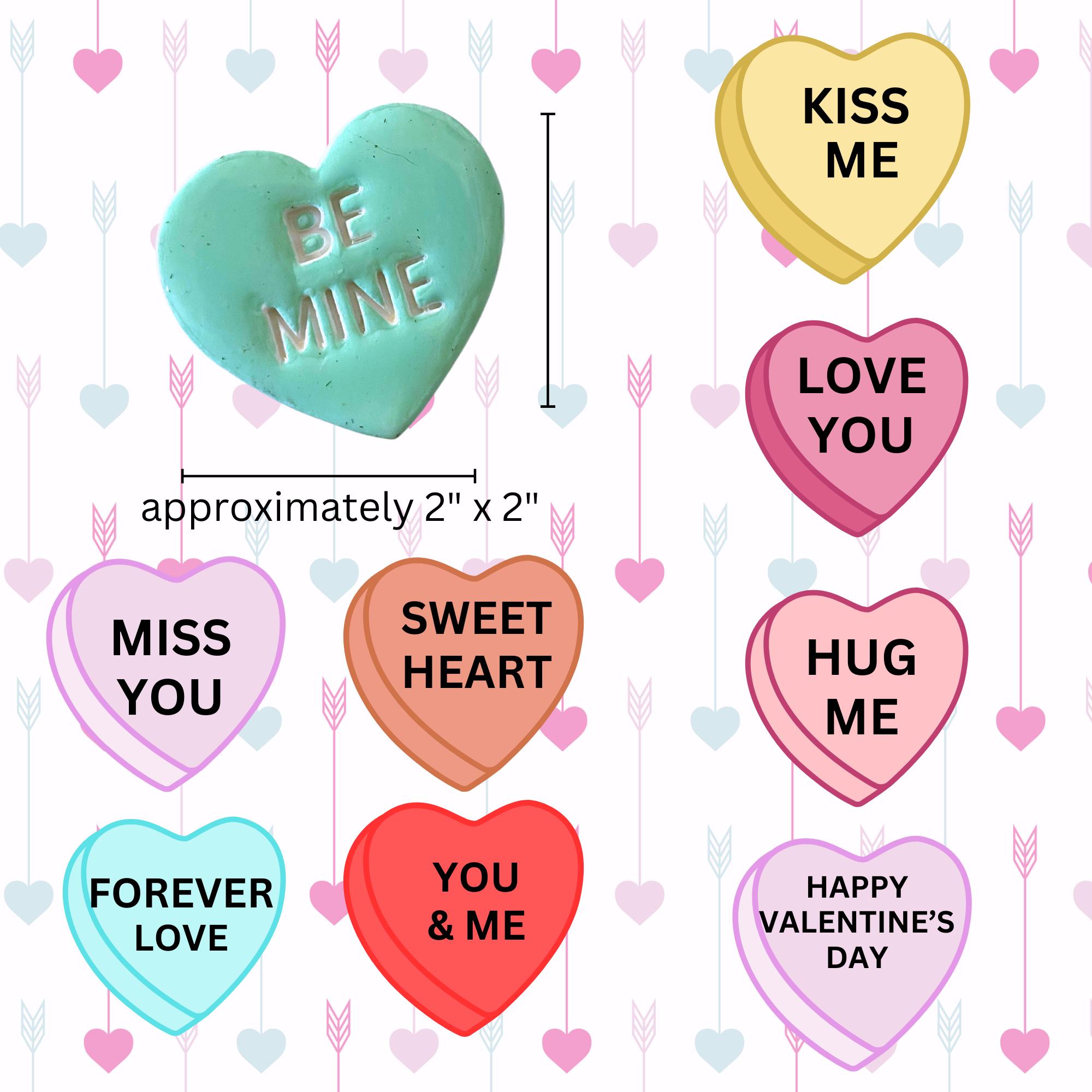 Valentine air clay heart conversation magnets are carefully molded by hand and stamped with sweet words. Each piece is then hand-painted and sealed on both sides to add a beautiful shine and lasting protection. A strong magnet is securely attached to the back, making them perfect for decorating refrigerators, lockers, or any magnetic surface.