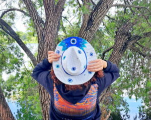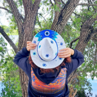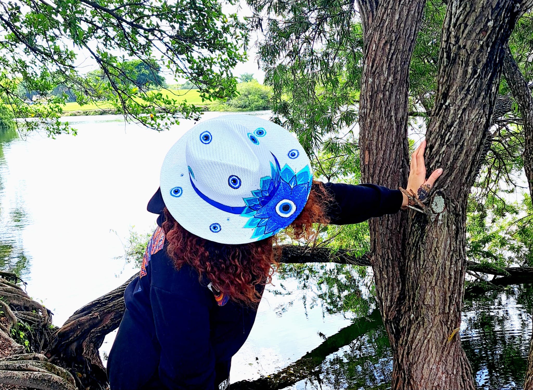 The straw hat features hand-painted blue mandala-inspired patterns, carefully applied to create depth, balance, and visual impact. Lightweight and breathable, it is ideal for sunny days, outdoor events, markets, vacations, and casual wear.