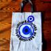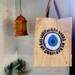 The canvas tote bag complements the hat with a matching blue circular design and artistic typography. Made from durable canvas, it offers generous space for daily essentials and sturdy handles for comfortable carrying. Both pieces together form a stylish, functional set that stands out effortlessly.