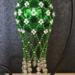 The process begins with selecting a standard-sized ornament (included), and carefully hand-weaving a netted pattern using fine beading techniques. The top portion hugs the ornament in a secure diamond and floral pattern, while the bottom cascades with dangling beadwork that moves beautifully with light and motion.