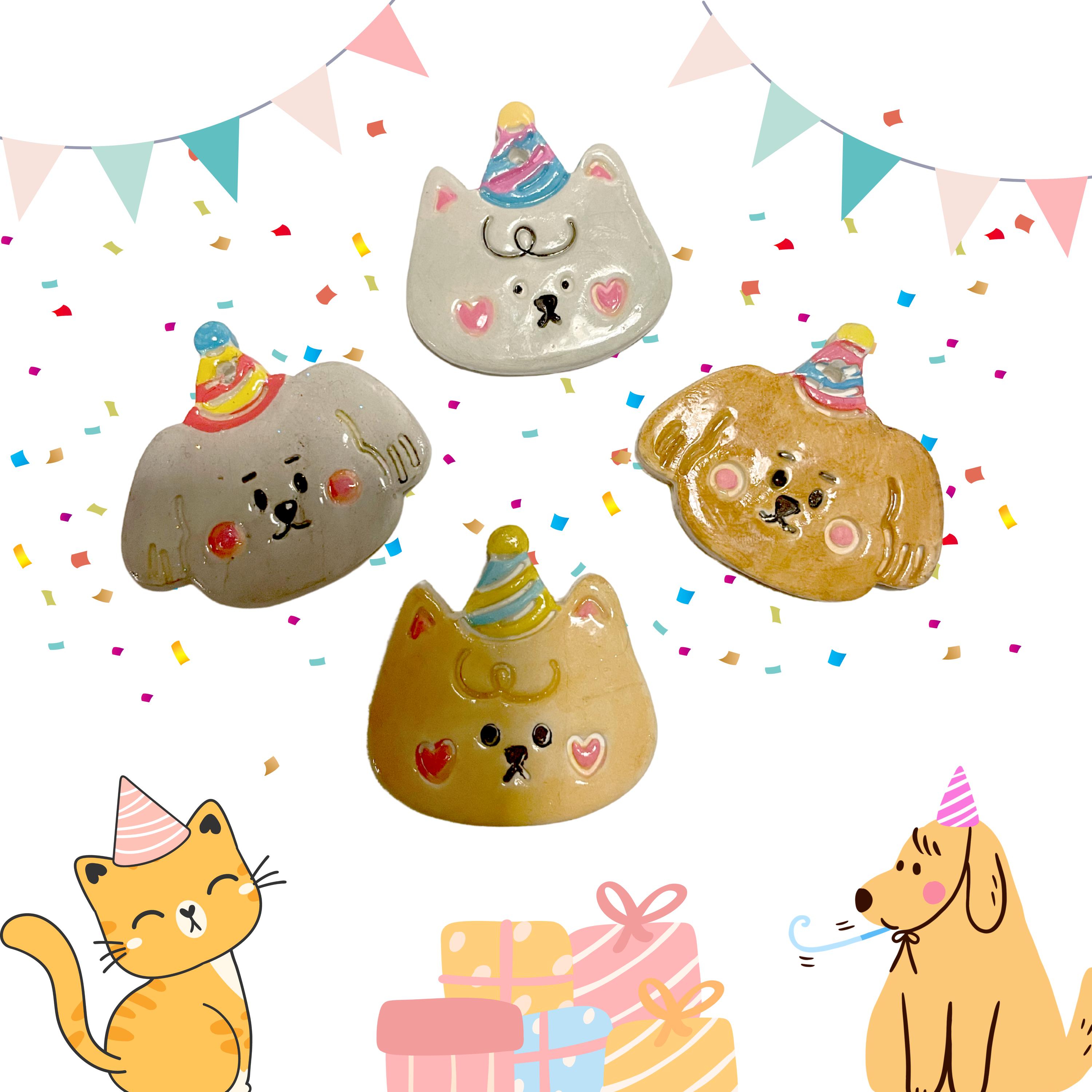 Handmade Birthday Cat & Dog Air Clay Magnets and Pins – Adorable Pet Lover Gift