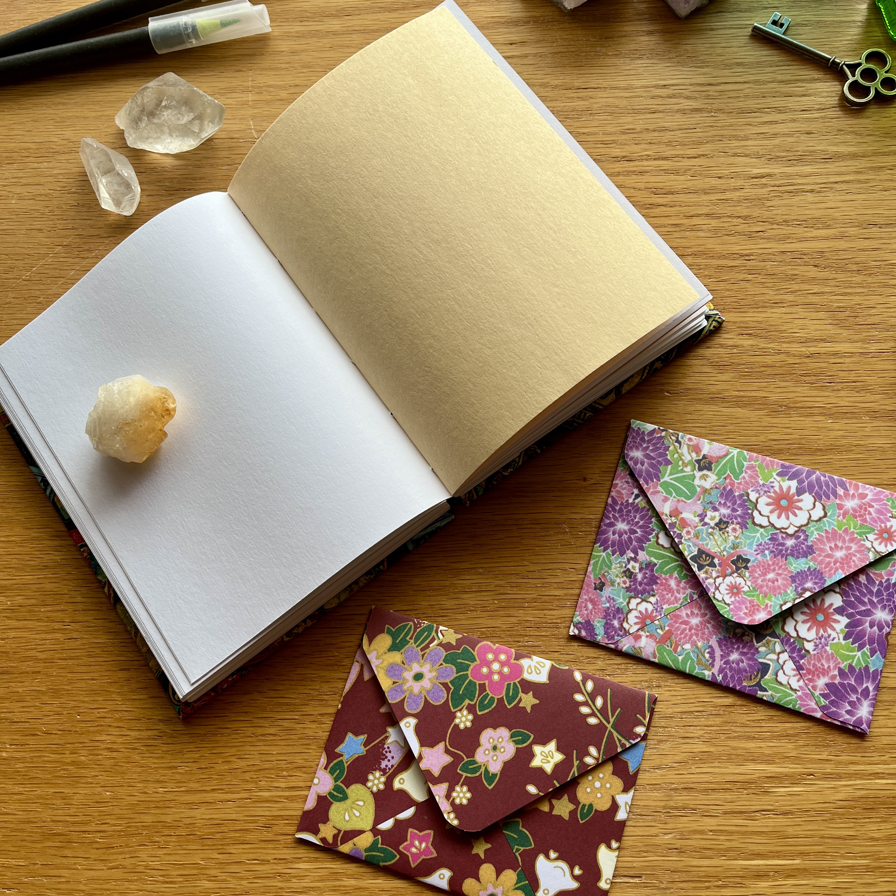This book comes with two handmade washi paper envelopes to keep your mementos safe in your journal :)
