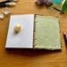The paper block is made of hand cut acid free 80lb white drawing paper. Perfect for journaling, sketching, pen and ink, pencils, markers, stamps, pastels, charcoals, tempera sticks, gelli printing and many other book art endeavors. Works great with all dry mediums and some lightly wet mediums.