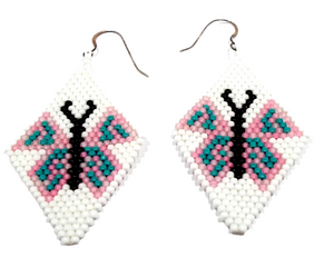 Pink Blue-Green Butterfly Seed Bead Dangle Earrings