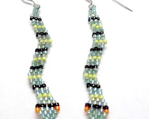 Green Snake Picture Seed Bead Dangle Earrings