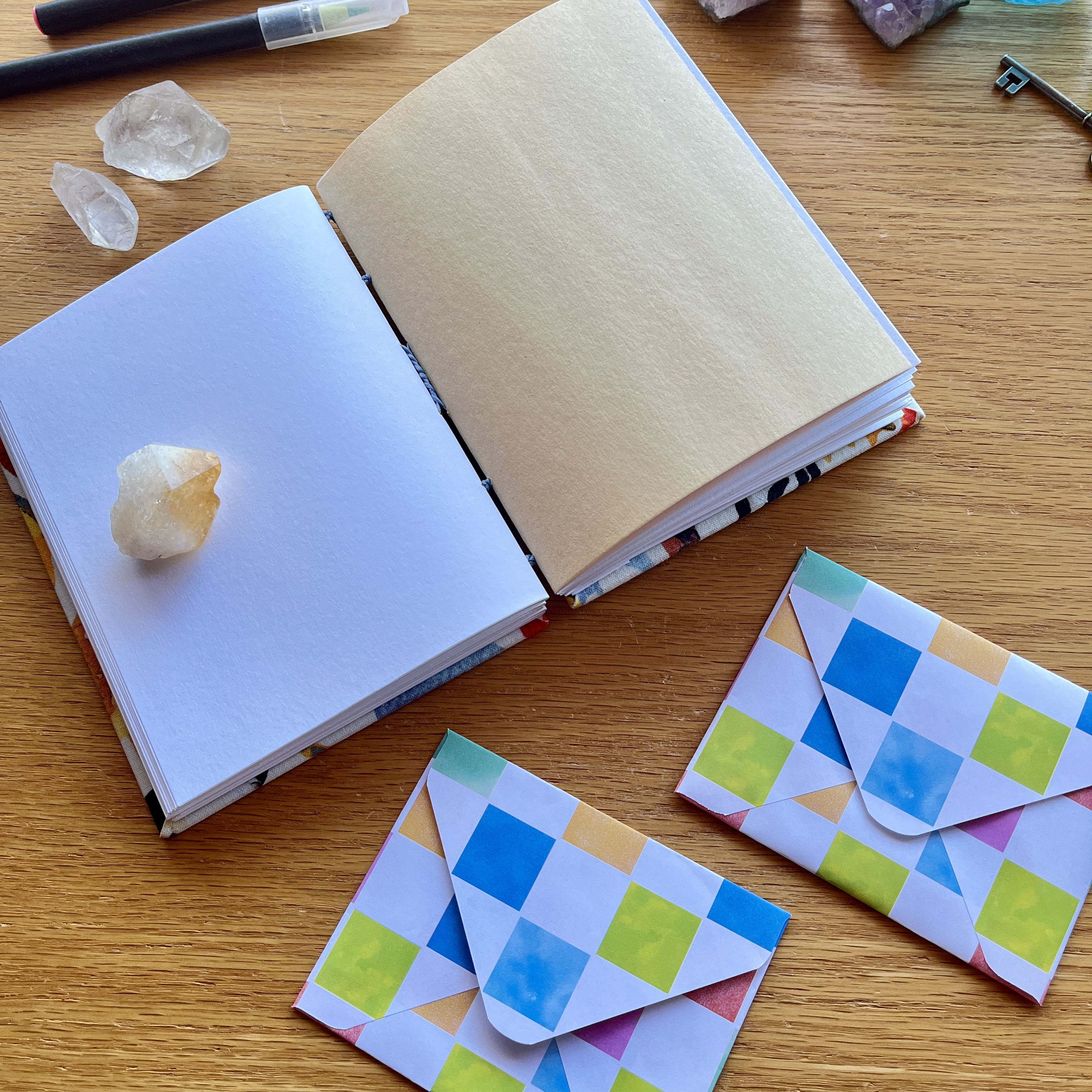 This book comes with two handmade washi paper envelopes to keep your mementos safe in your journal :)