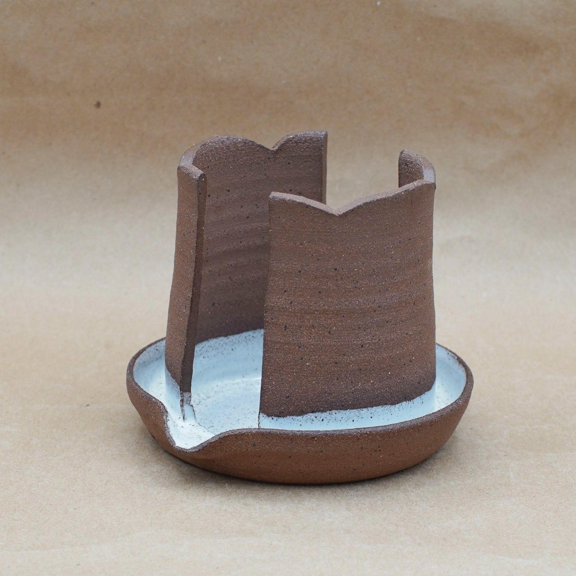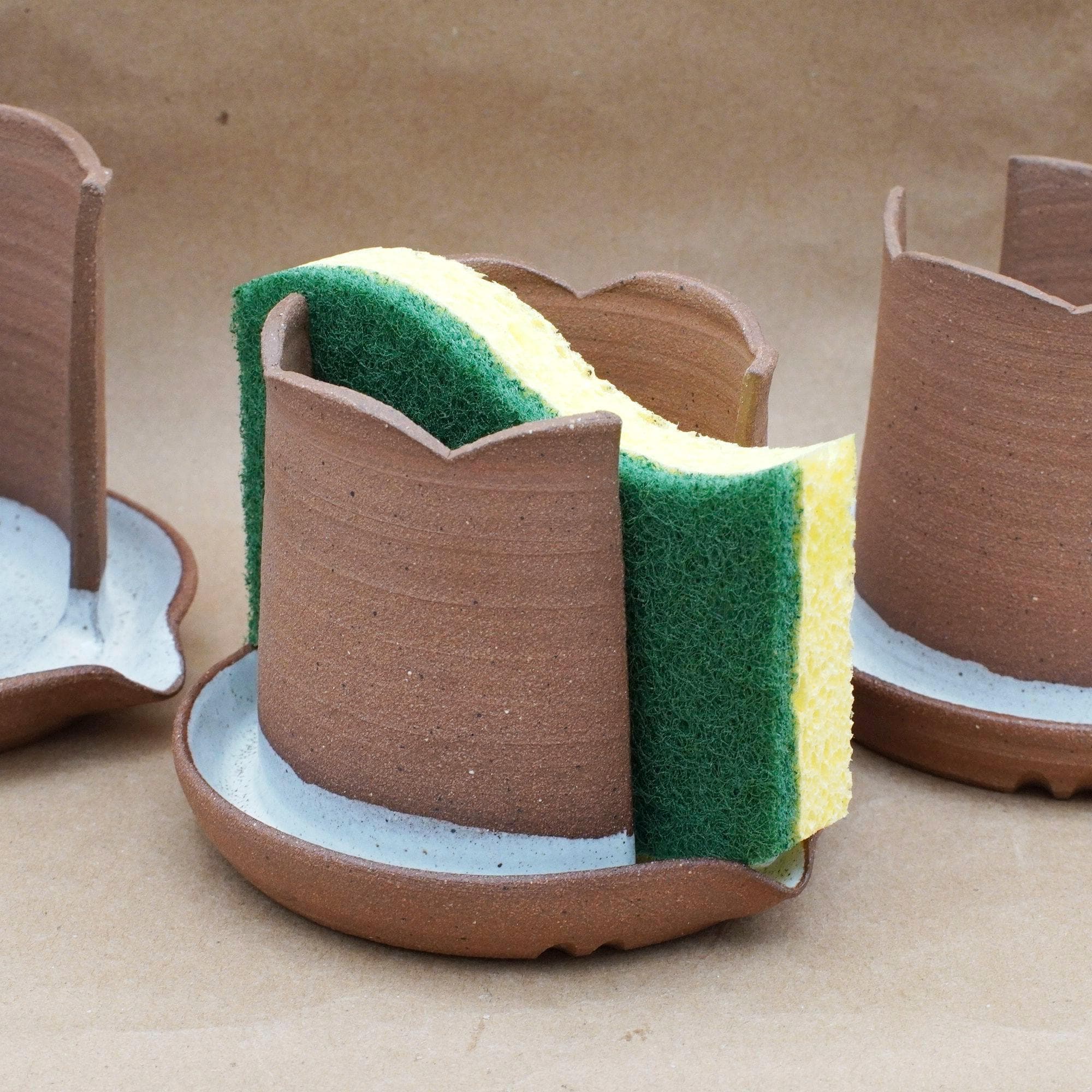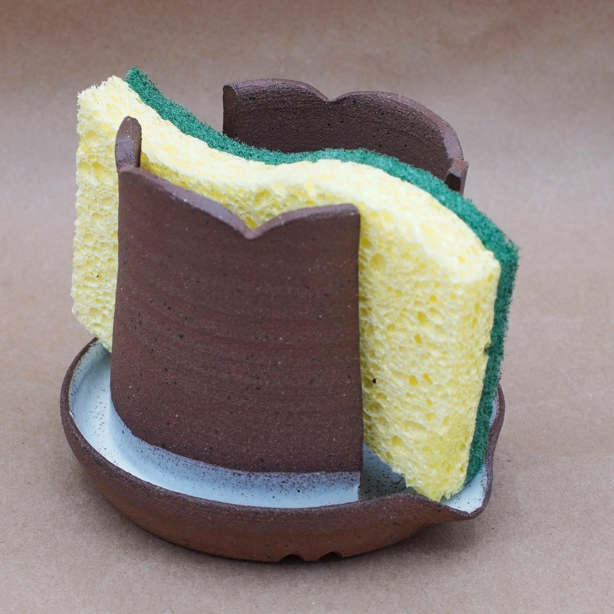 Keep your kitchen sink clean and organized with this handmade ceramic sponge holder, designed to store sponges neatly while allowing it to air dry.