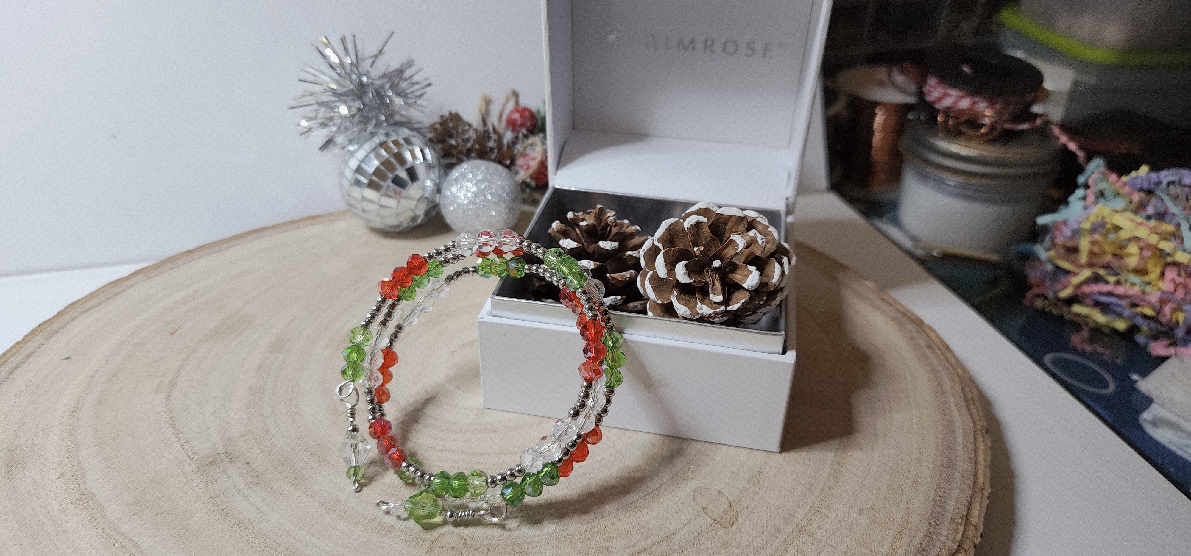 Tags for Goimagine SEO: Christmas bracelet, handmade holiday jewelry, crystal memory wire bracelet, red green white jewelry, festive accessories, holiday gift for her, stocking stuffer bracelet, handmade jewelry Christmas, Bella’s Beaded Bliss