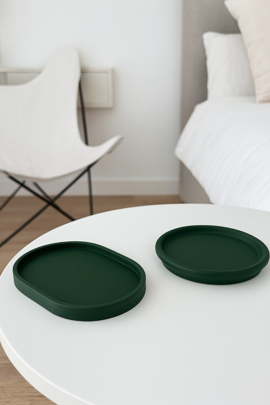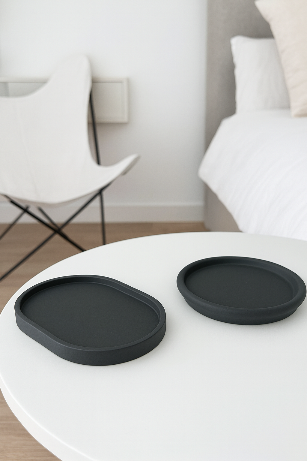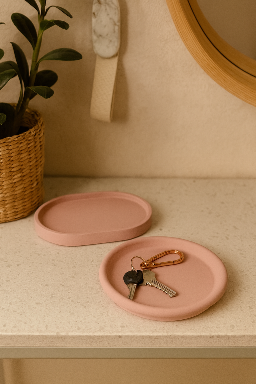 Bring functional elegance to your space with this set of two handcrafted concrete trays. Designed in a soft, minimalist style, these trays are perfect for holding jewelry, keys, candles, or other small treasures. Each piece is individually poured, sanded, and finished by hand in my home studio, making every set truly one of a kind.