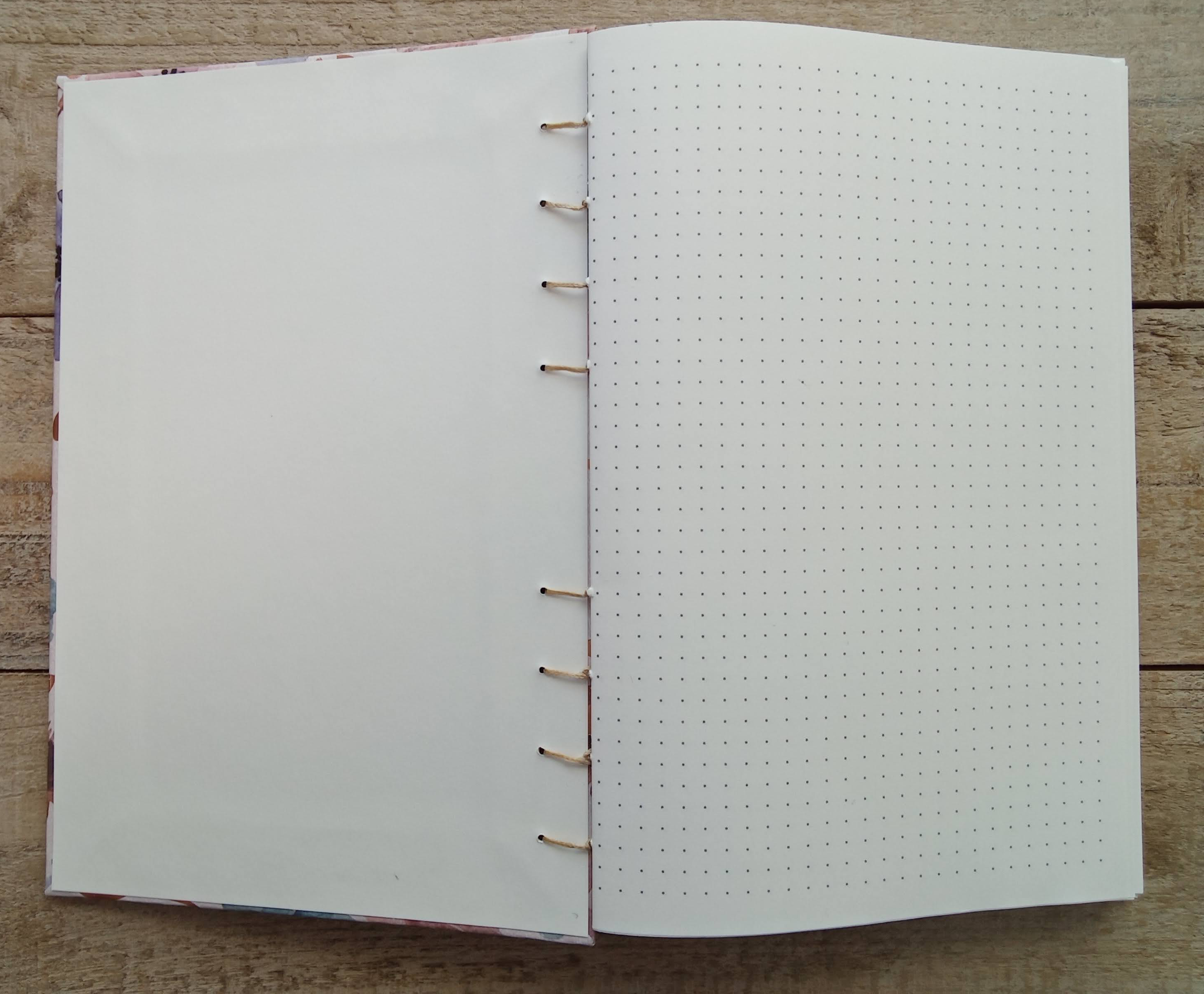 Elevate your journaling with this thoughtfully crafted handmade hardcover dot grid journal, stitched with a traditional Coptic binding that allows it to lay perfectly flat—ideal for writing, sketching, or bullet journaling.