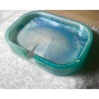 Handmade soap dish, self draining, cast in durable virtually indestructible poly resin with a non slip backing, easy to clean. These are hand crafted one at a time so no two are identical. Add some flair to your bathroom decor. Hand soaps are making a huge comeback and these look great on counter tops or on shower shelves.
