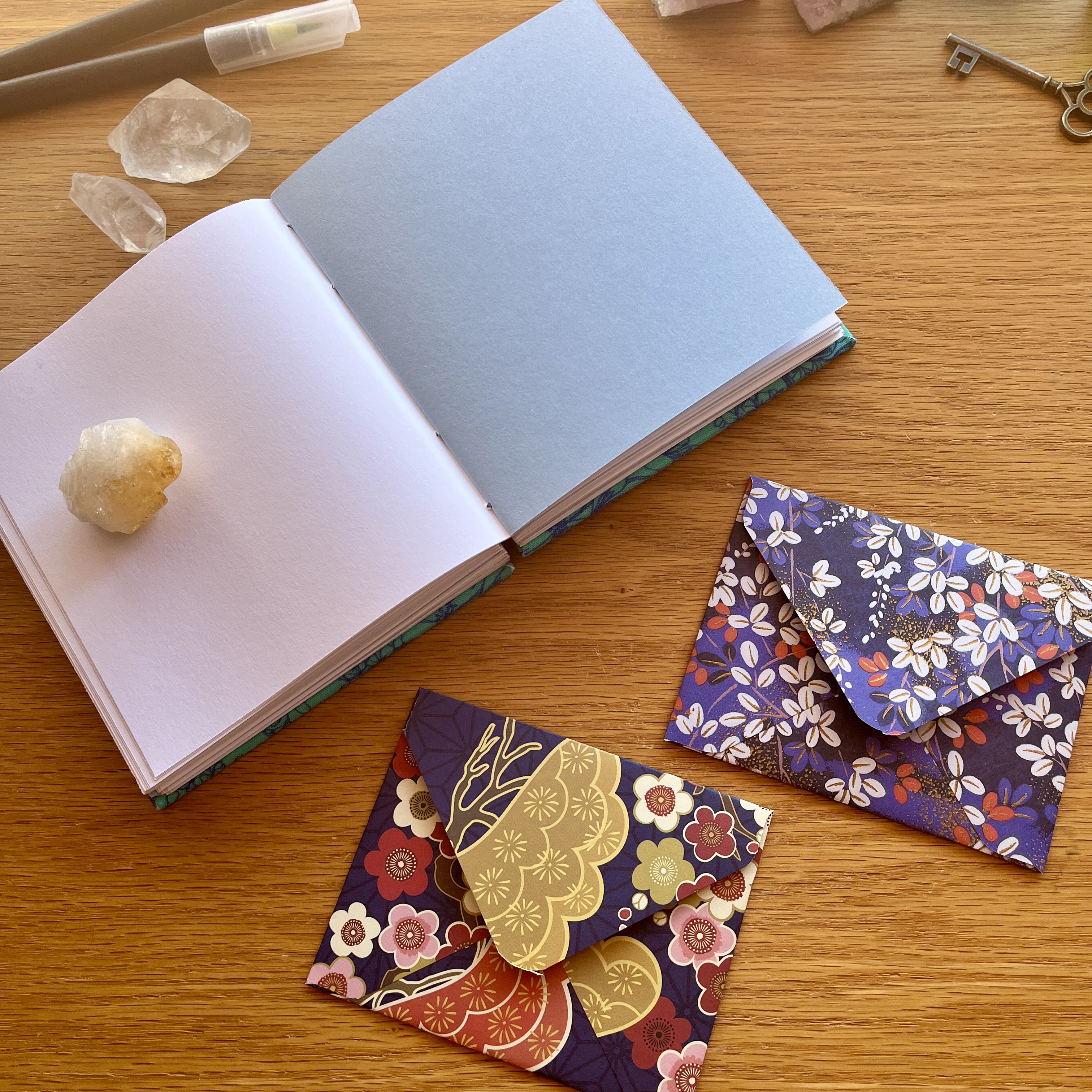 This book comes with two handmade washi paper envelopes to keep your mementos safe in your journal :)