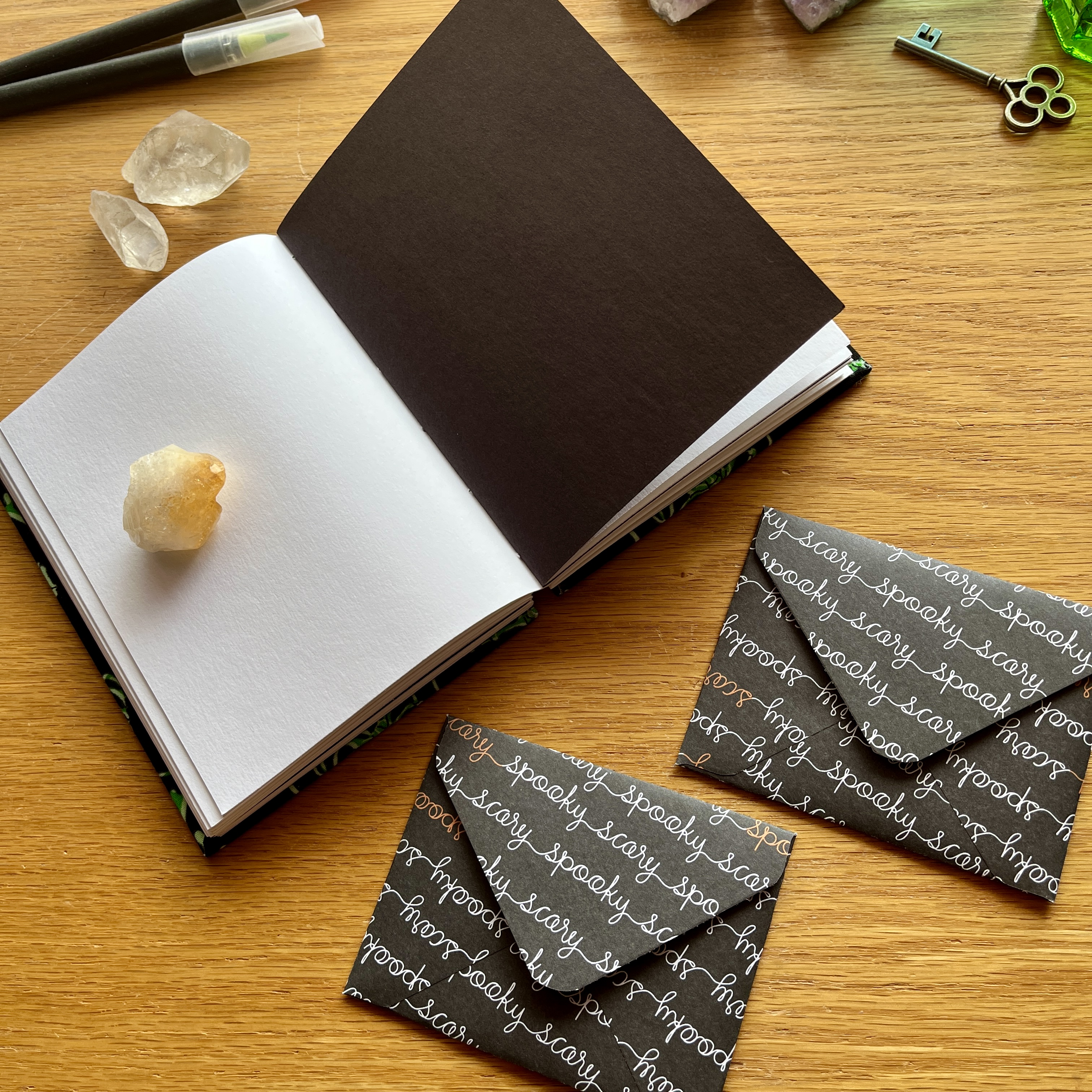 This book comes with two handmade paper envelopes to keep your mementos safe in your journal :)