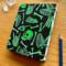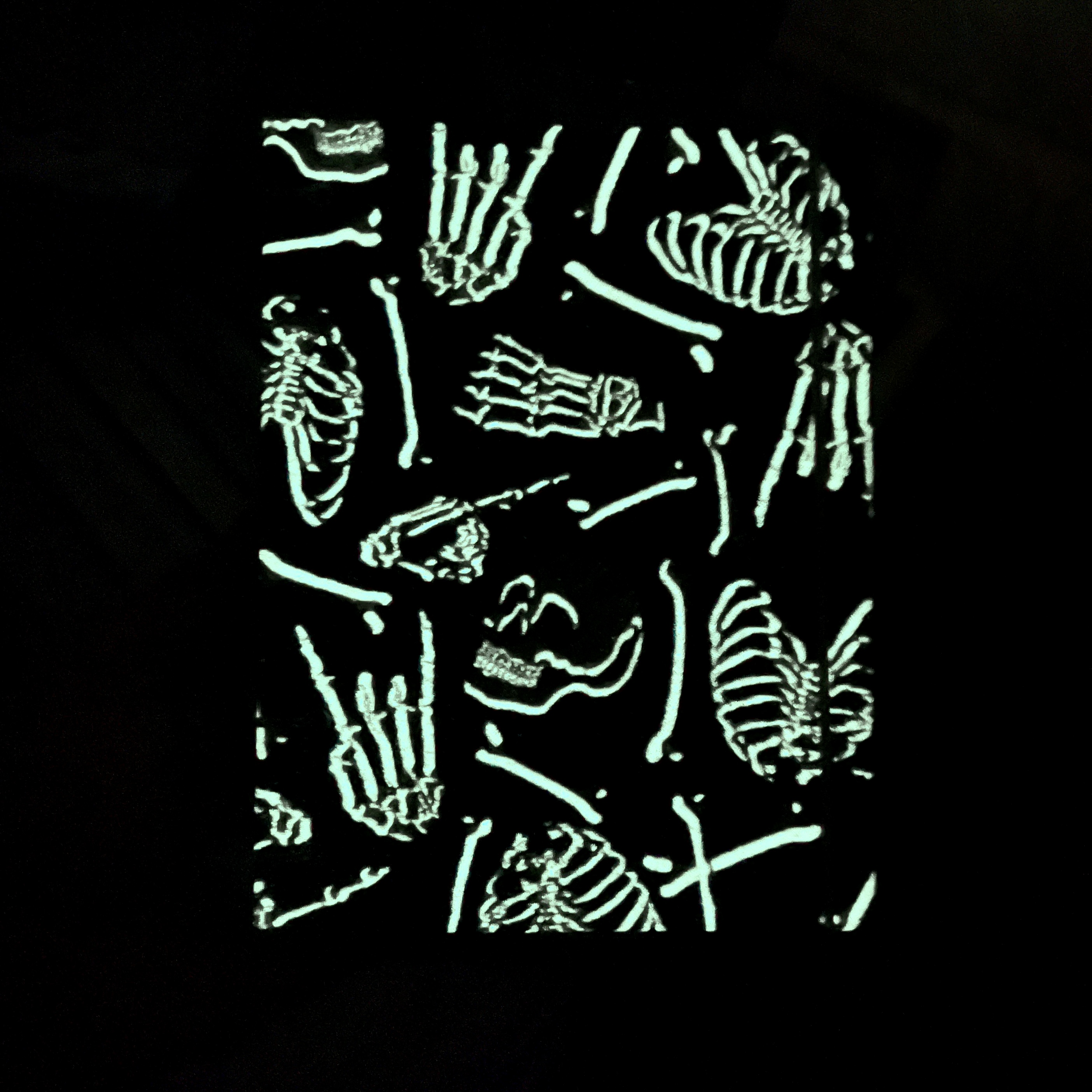 - the hardcover is made with acid free bookboard and a glow in the dark bones themed book cloth