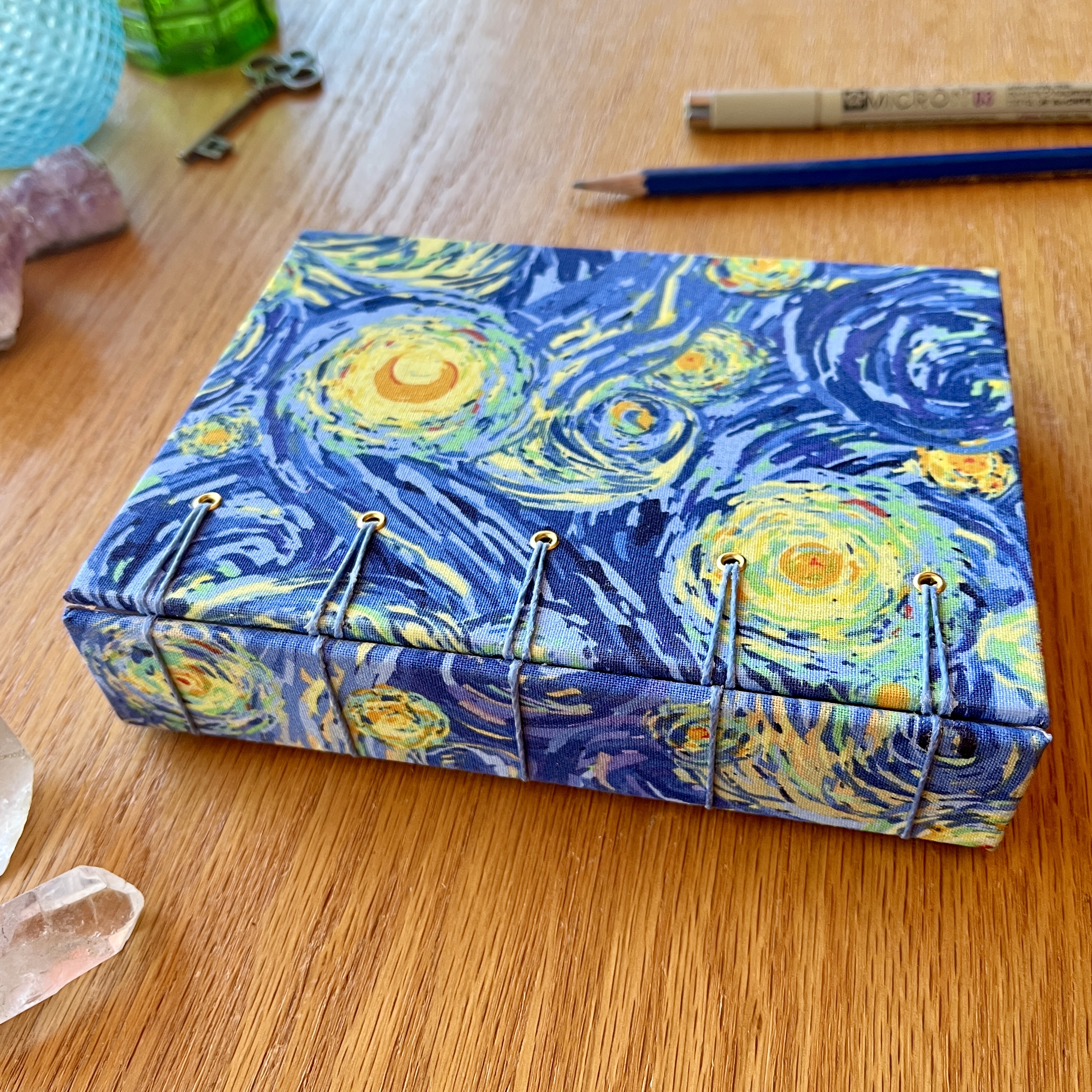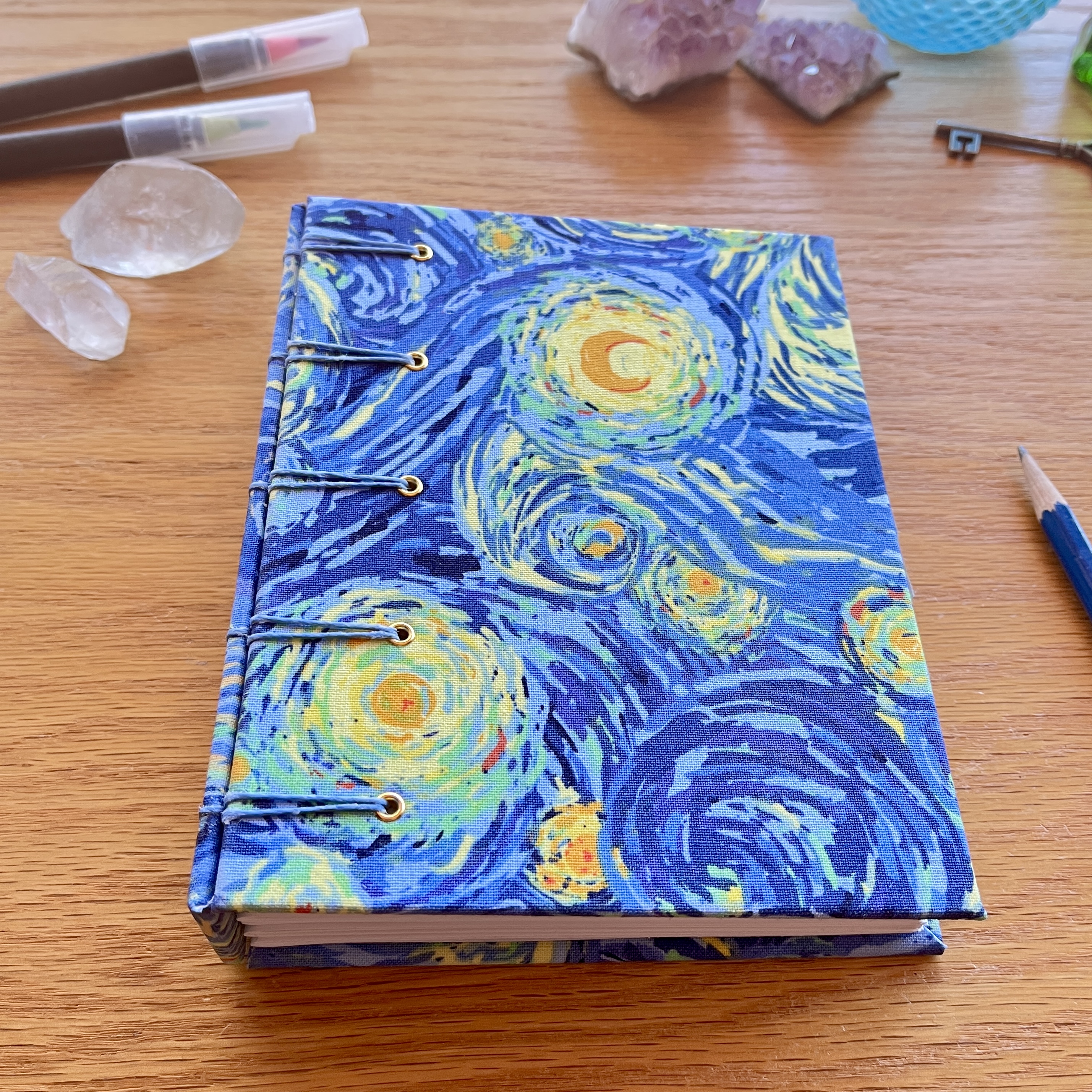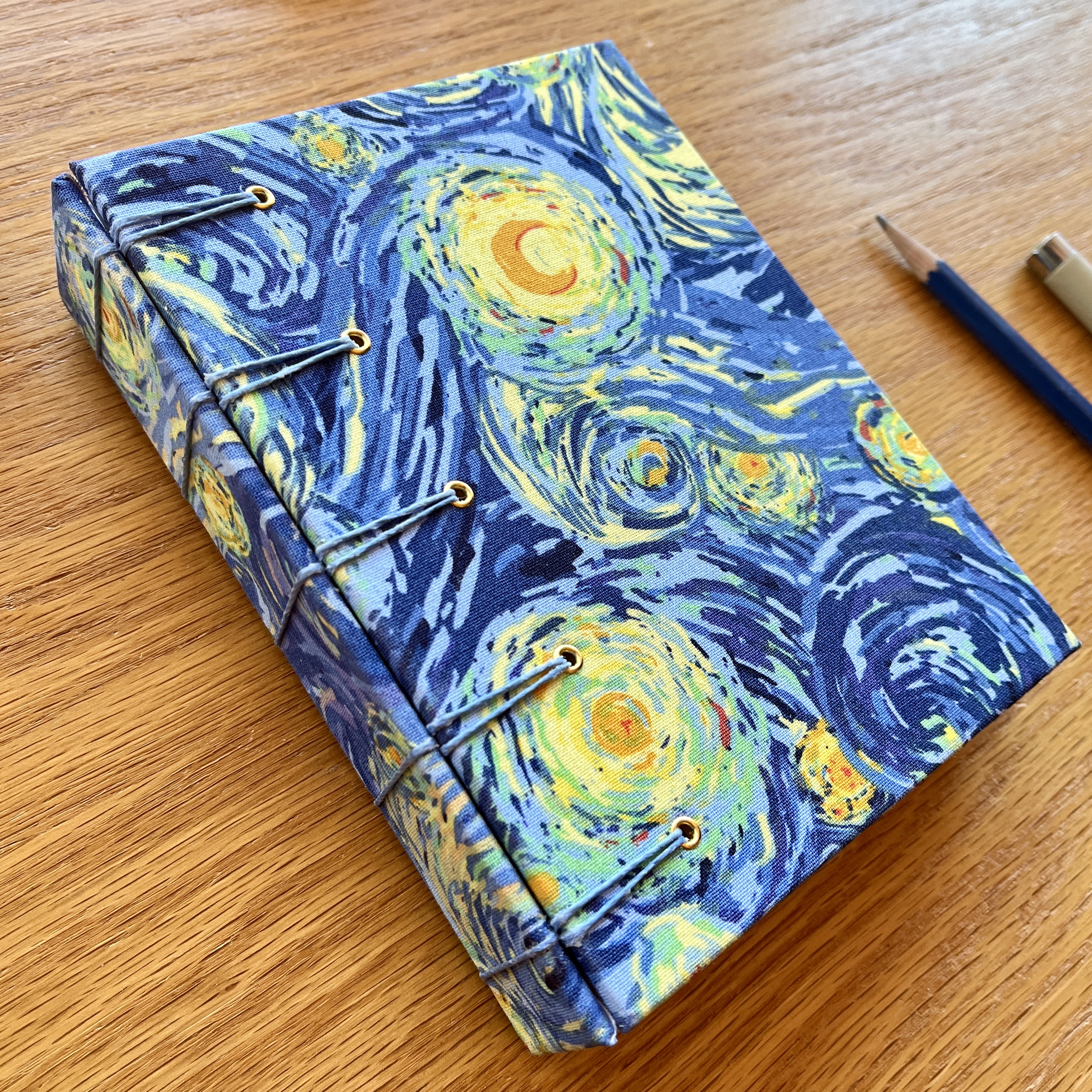 - the hardcover is made with acid free bookboard covered in a starry night bookcloth