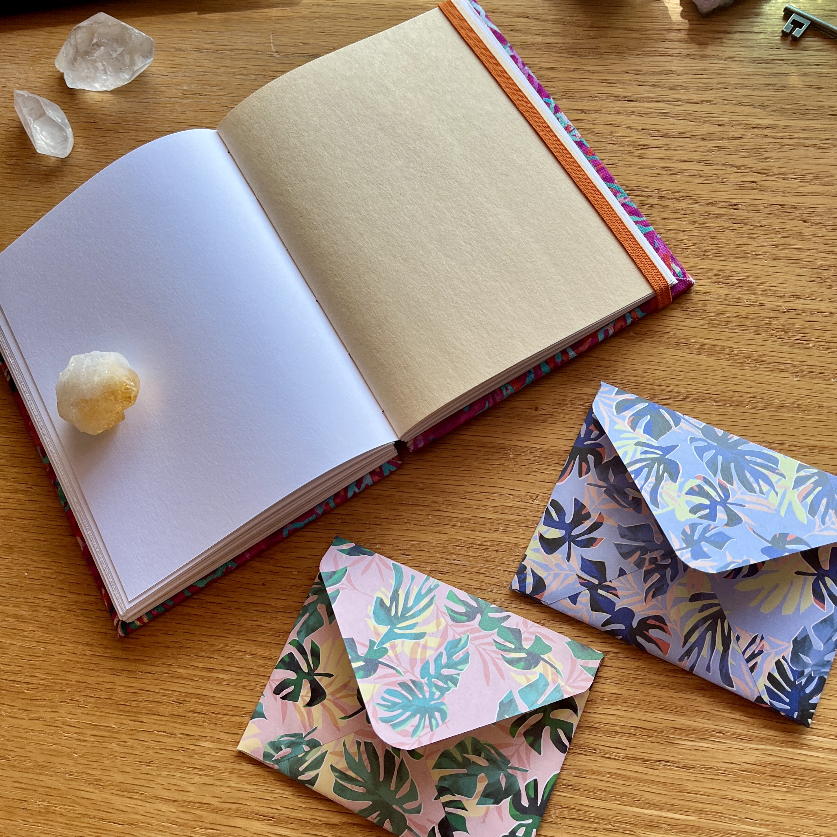 This book comes with two handmade washi paper envelopes to keep your mementos safe in your journal :)
