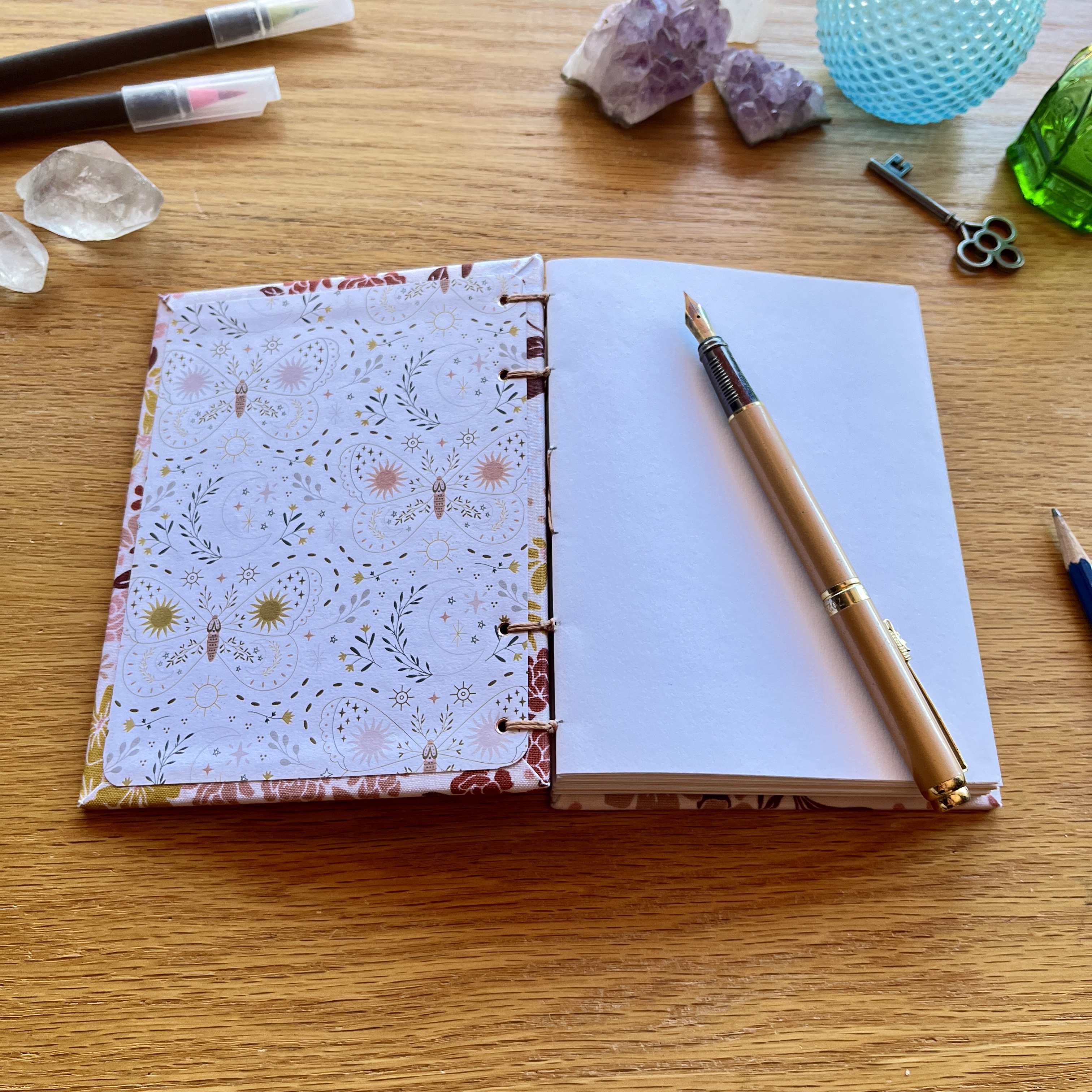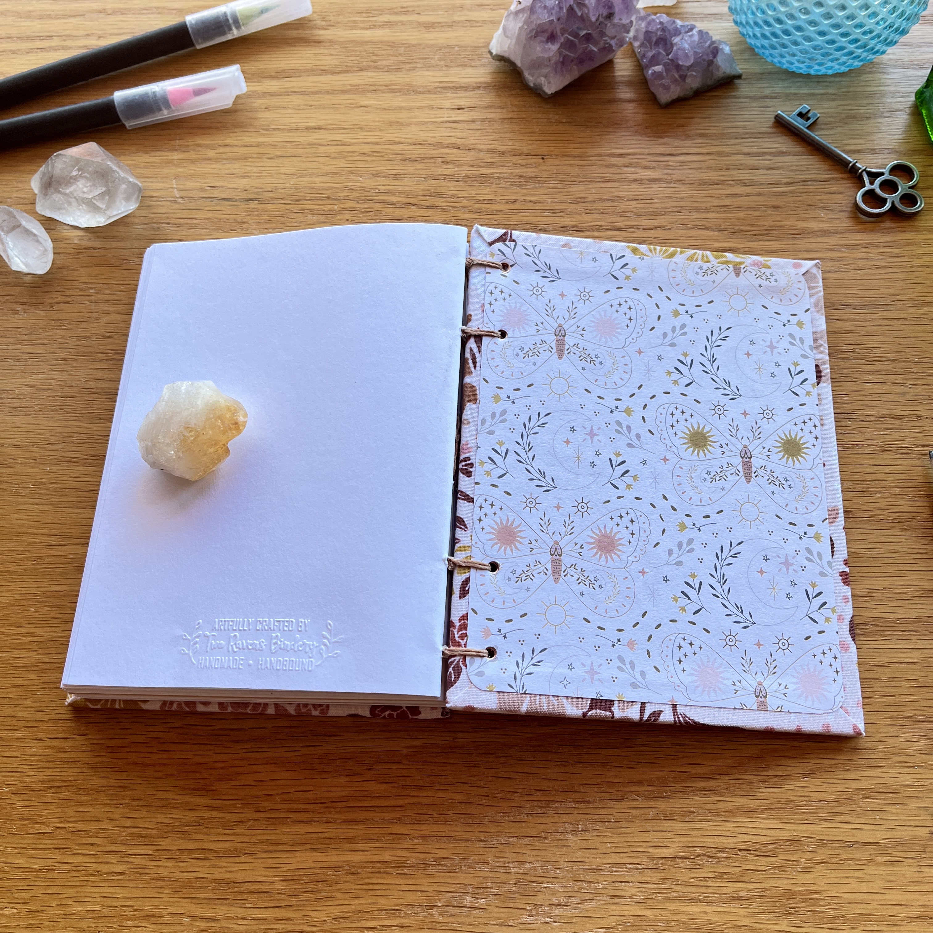 - finished with coordinating butterflies and celestials patterned endpapers and copper metal eyelets