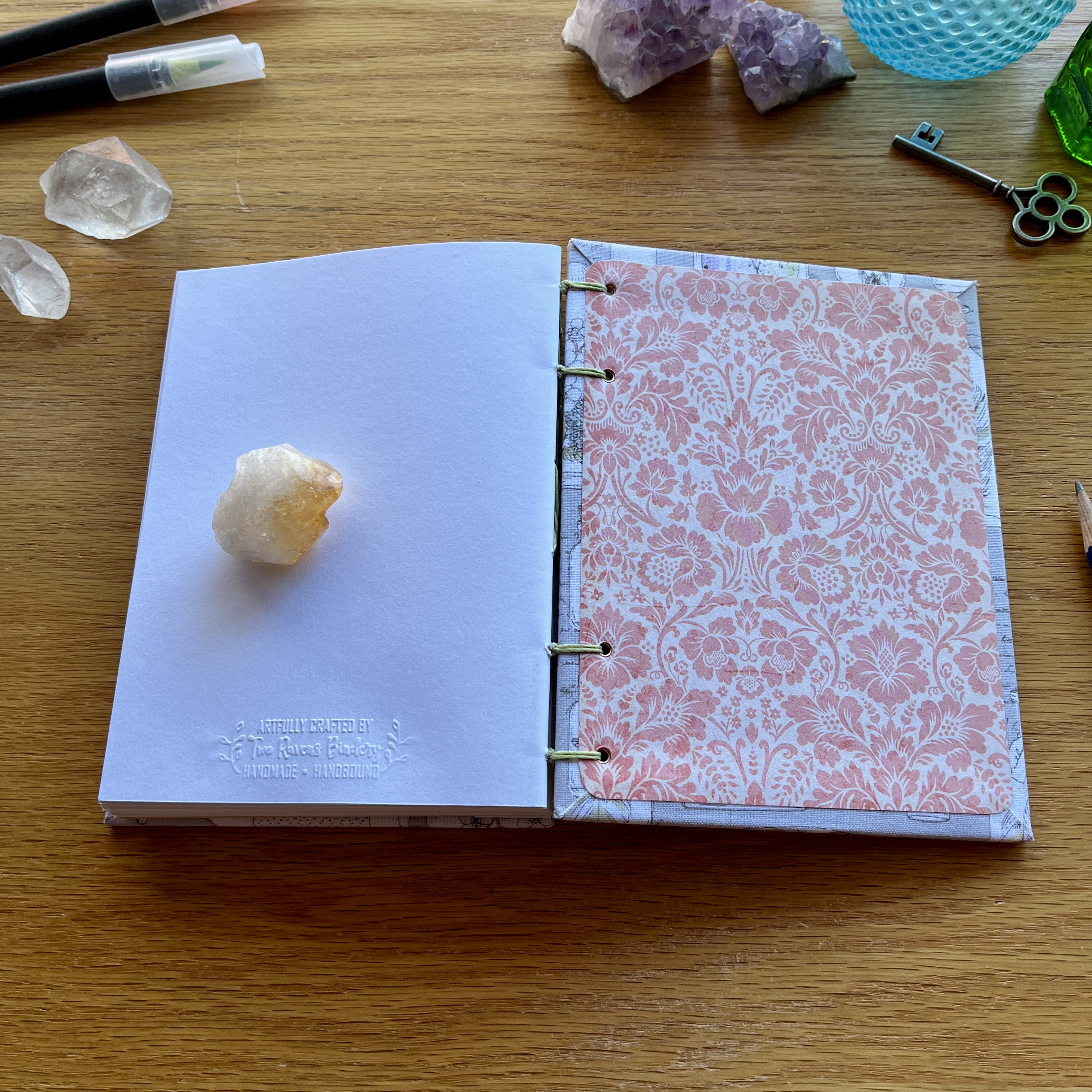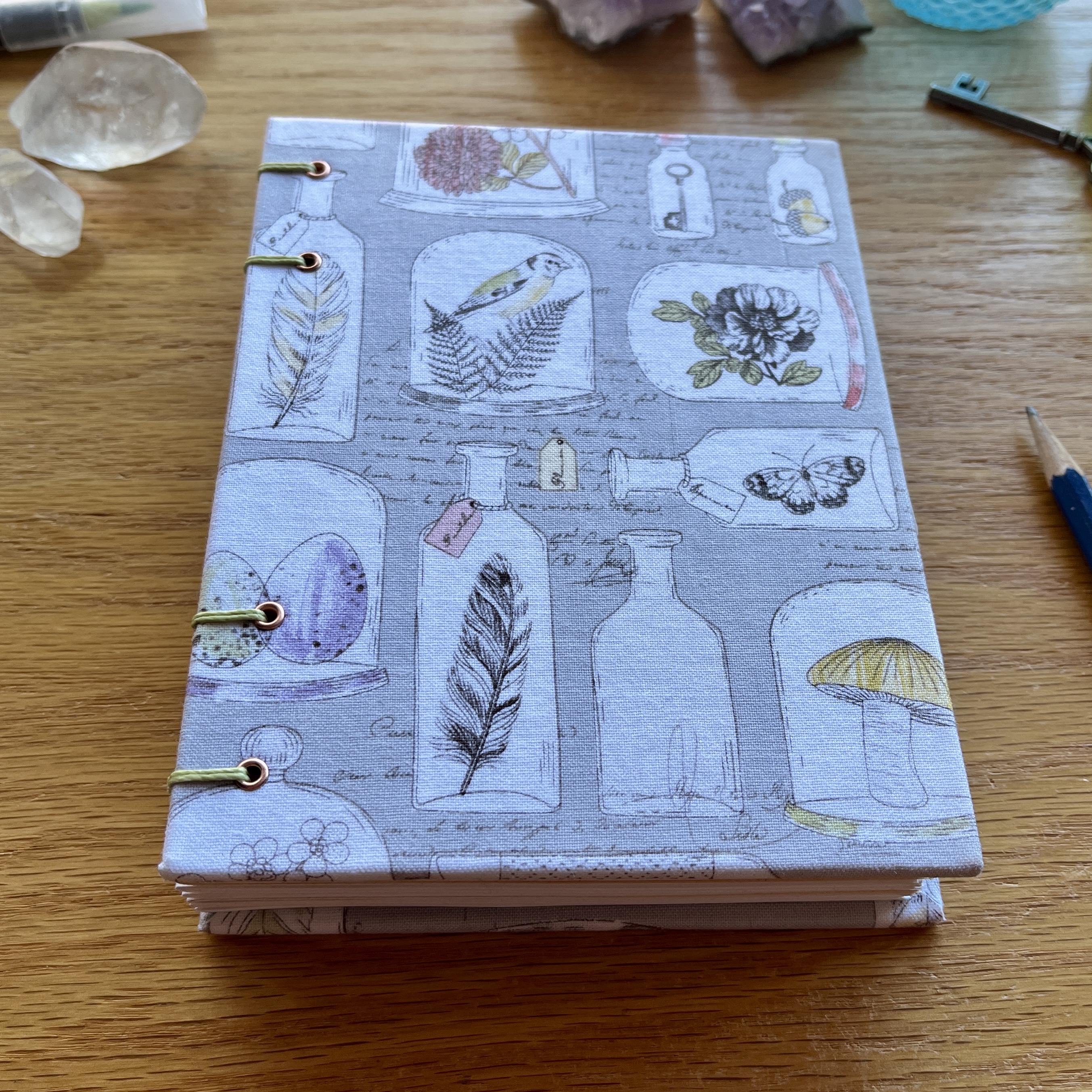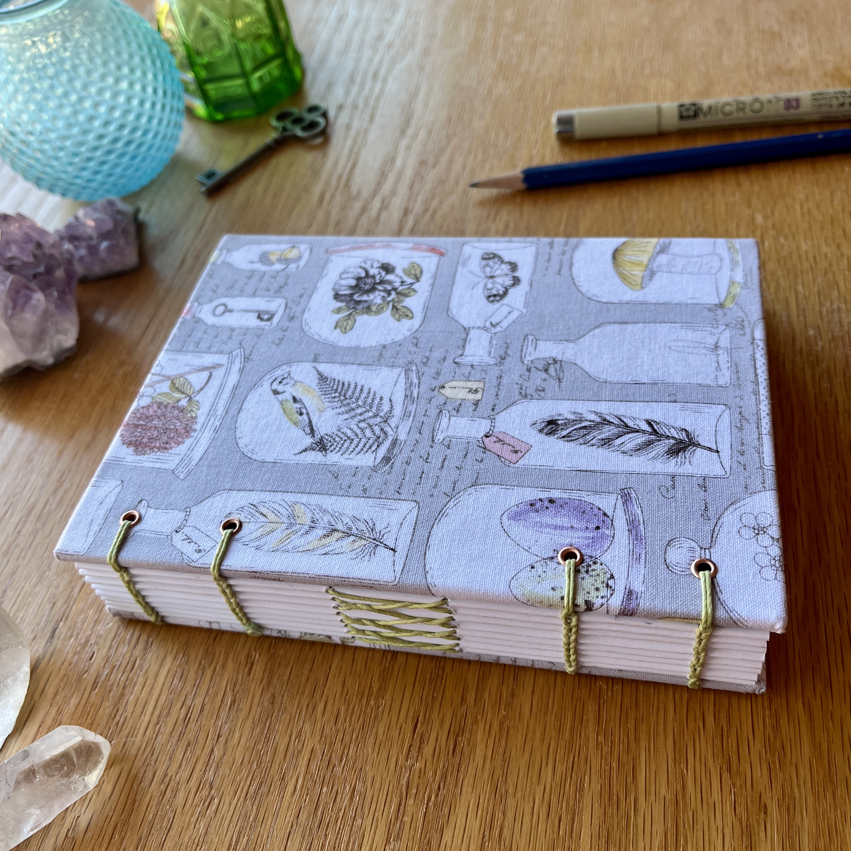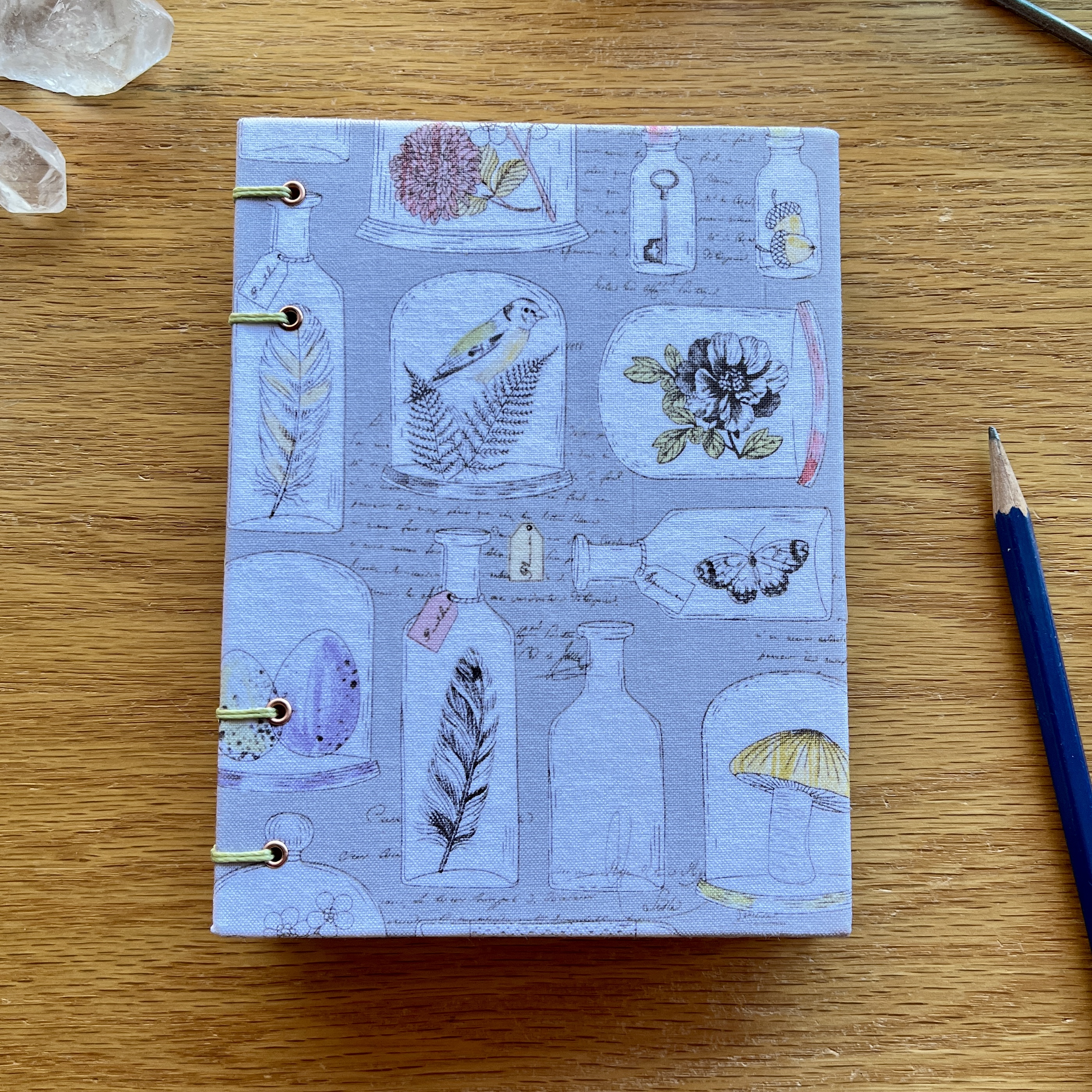 I've created the covers in a nature collection themed book cloth and meticulously handbound using the coptic binding technique which allows the book to lay perfectly flat when open for ease of use.