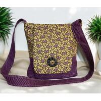 Stand out with this handmade messenger bag, featuring a playful parrot and cockatiel print flap, mustard yellow body, and green-and-white lining. Made from upcycled upholstery fabric, this one-of-a-kind crossbody is both fun and functional — the perfect eco-friendly bag for everyday adventures.