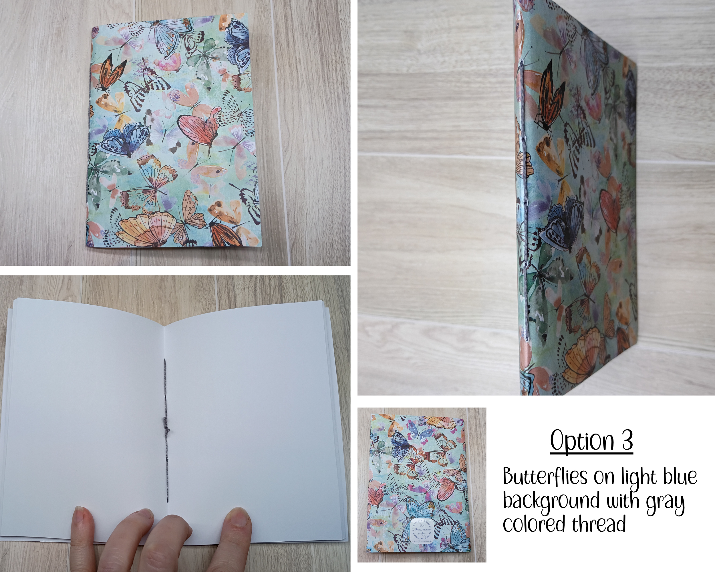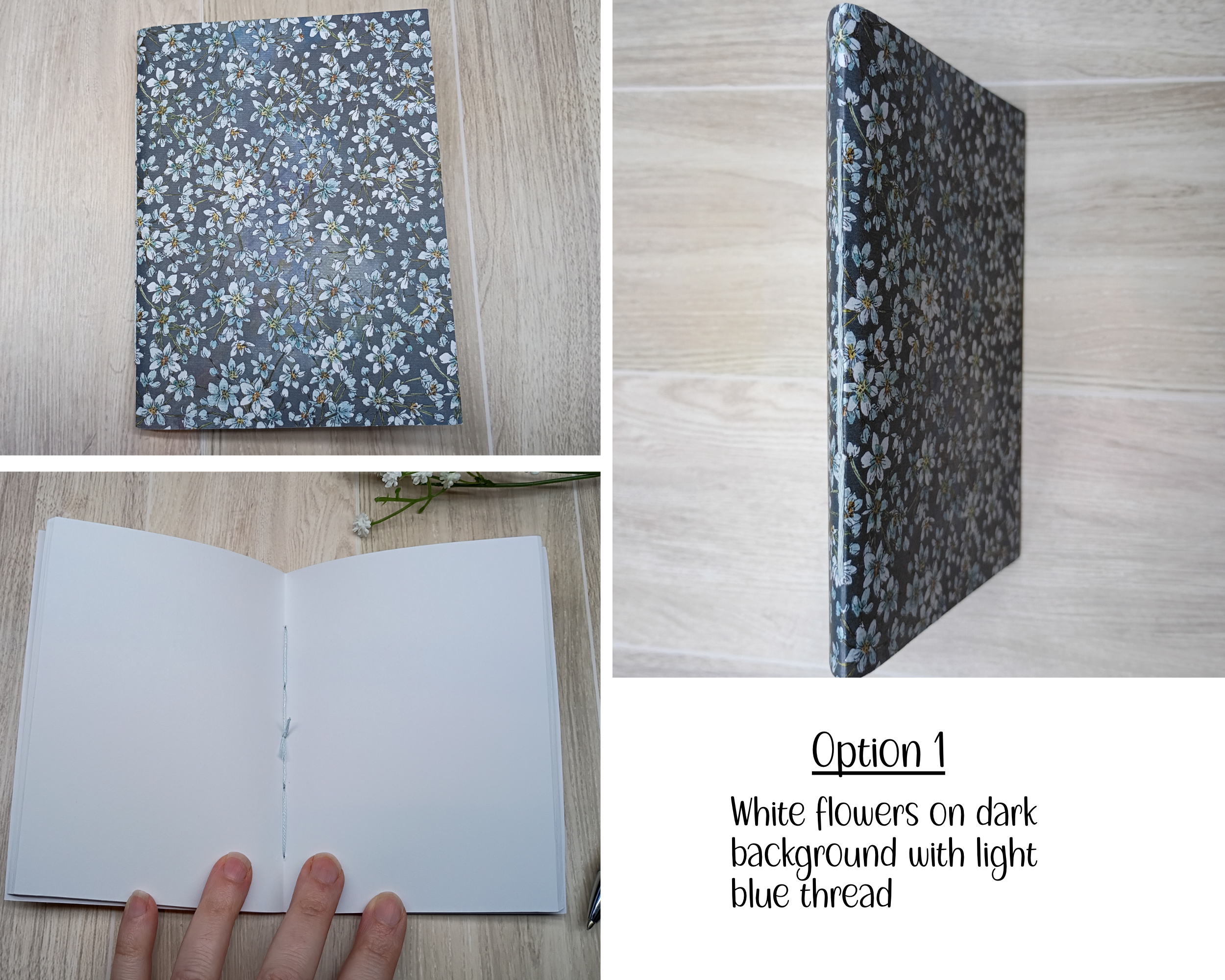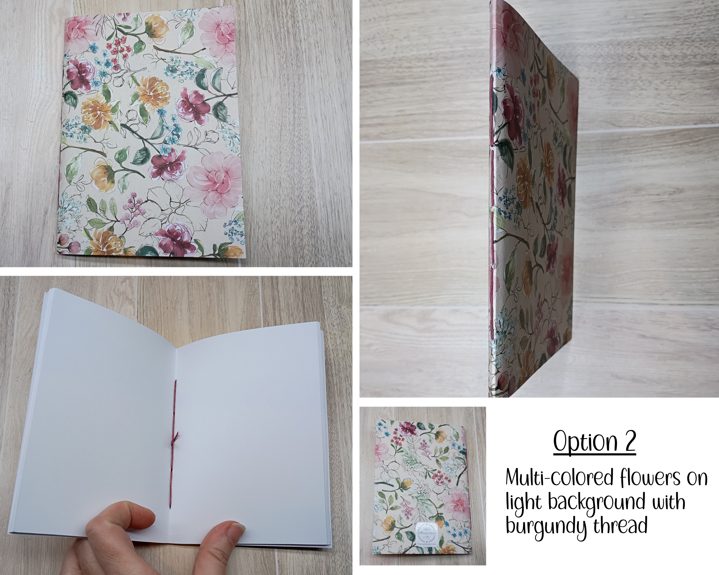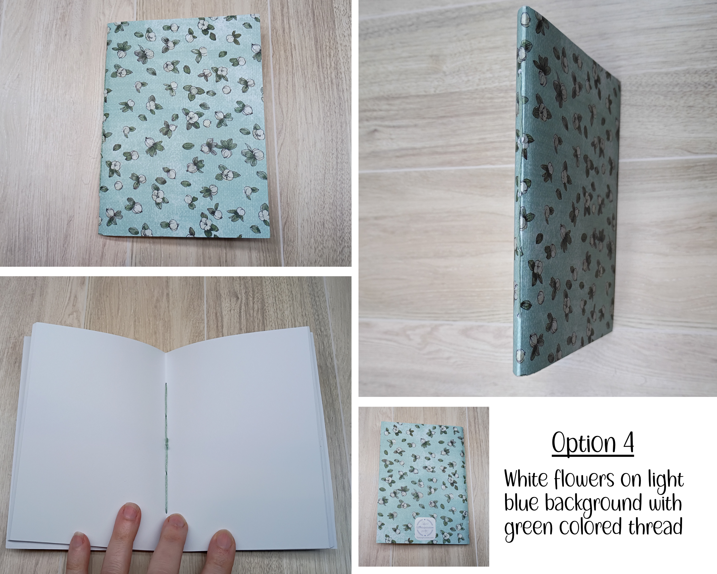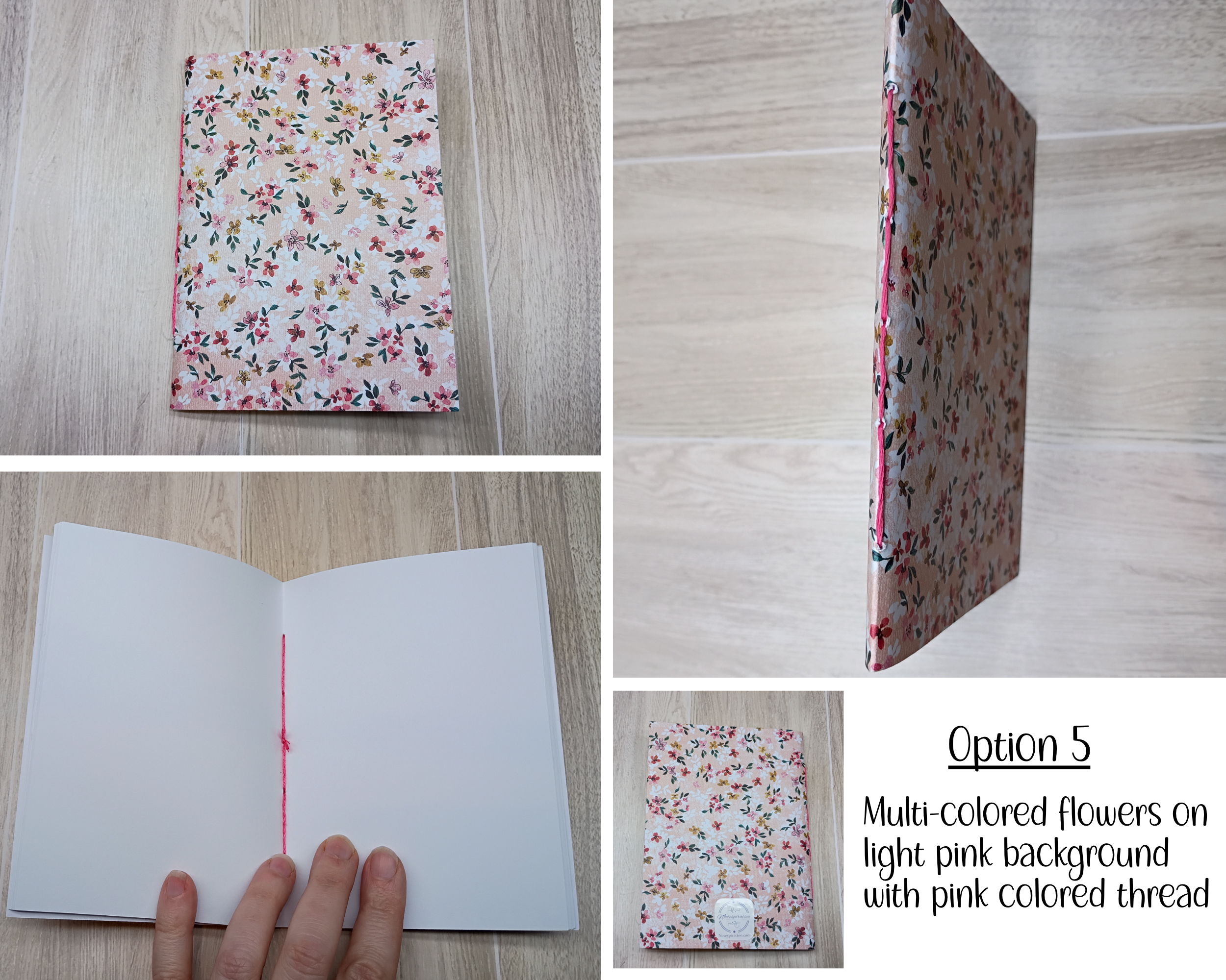 Each notebook is crafted with care using decorative cardstock covers and hand-bound with coordinating thread colors for a beautiful finish. Inside, you’ll find 15 cut-down sheets (60 pages front and back) of blank paper, ready for your ideas.