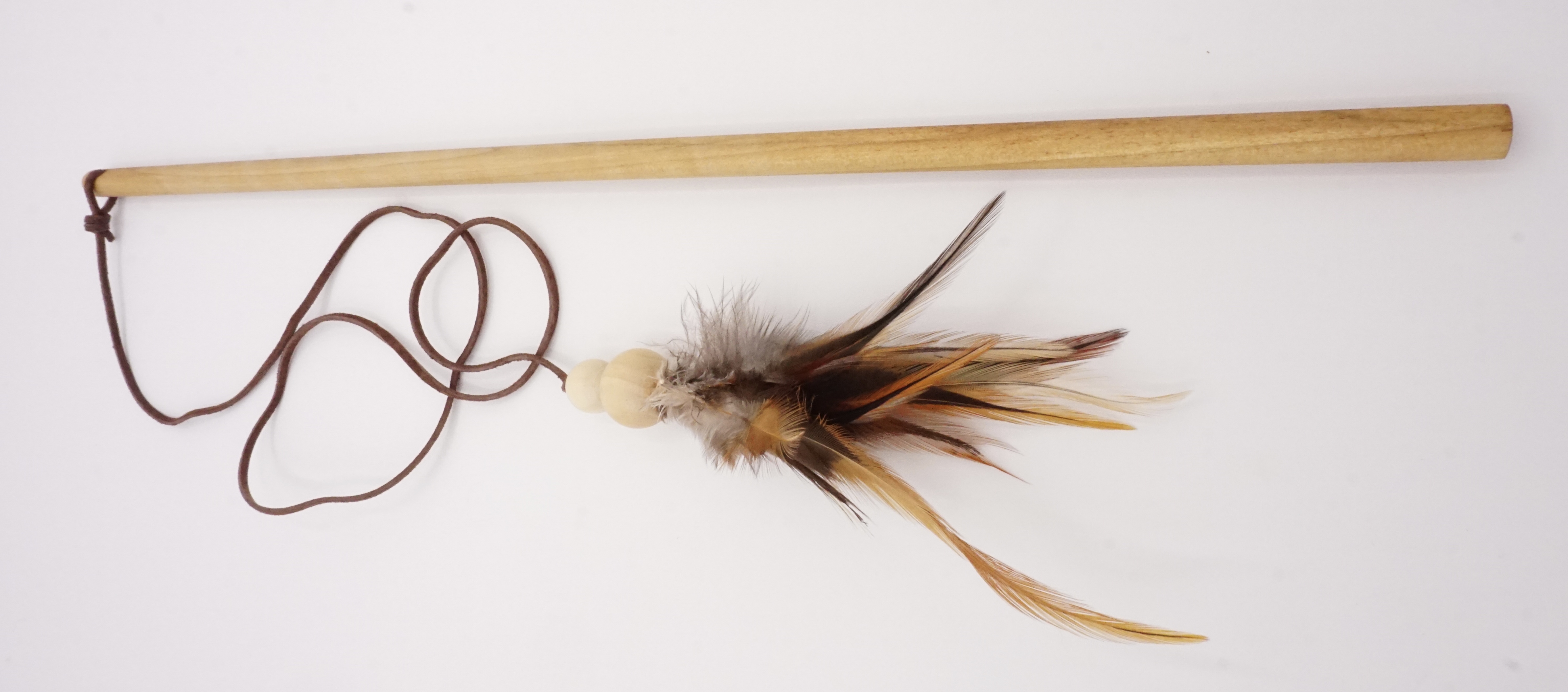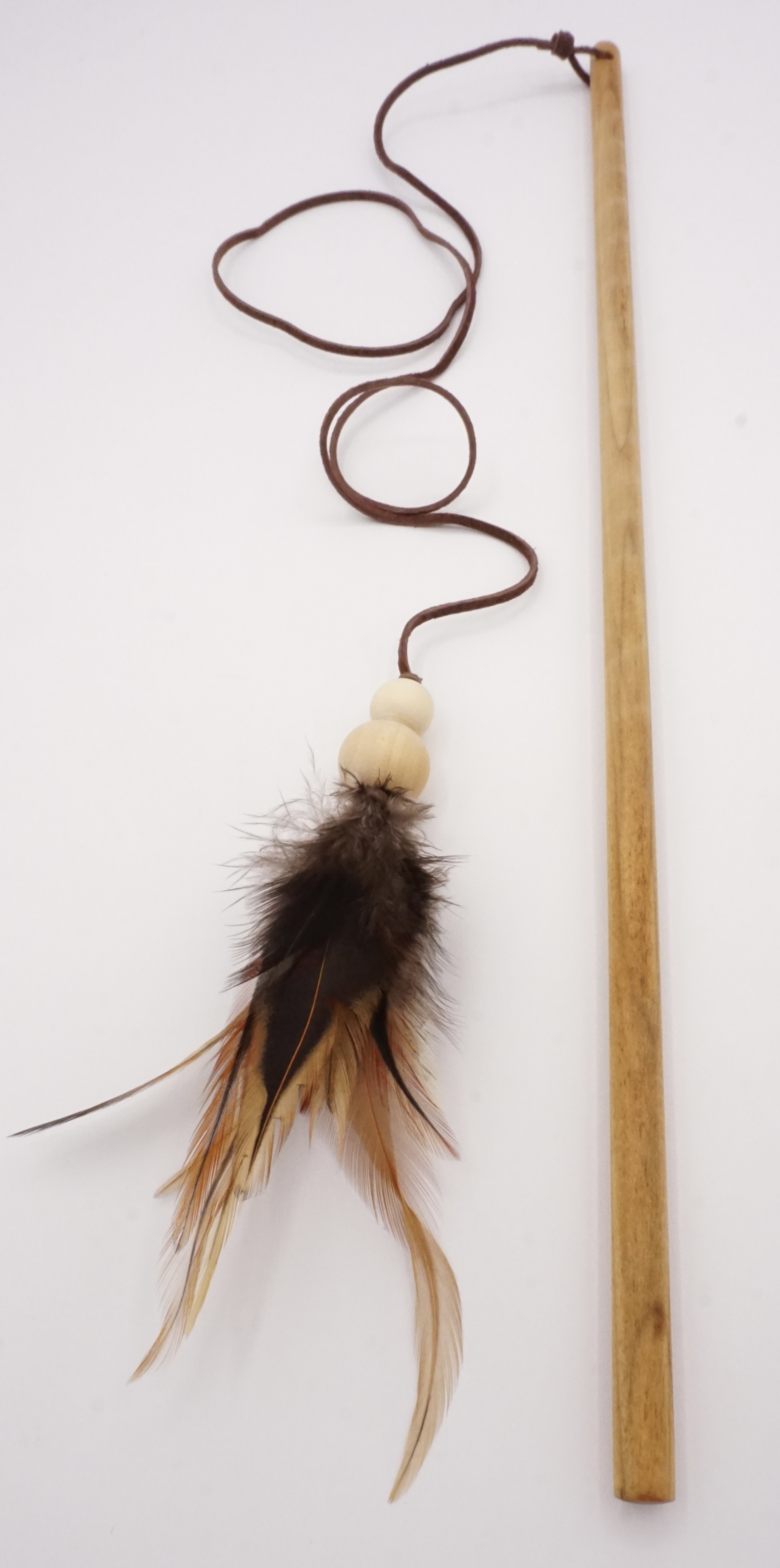 No plastic was used in the making of handmade Natural Feather Teaser Wand Toy