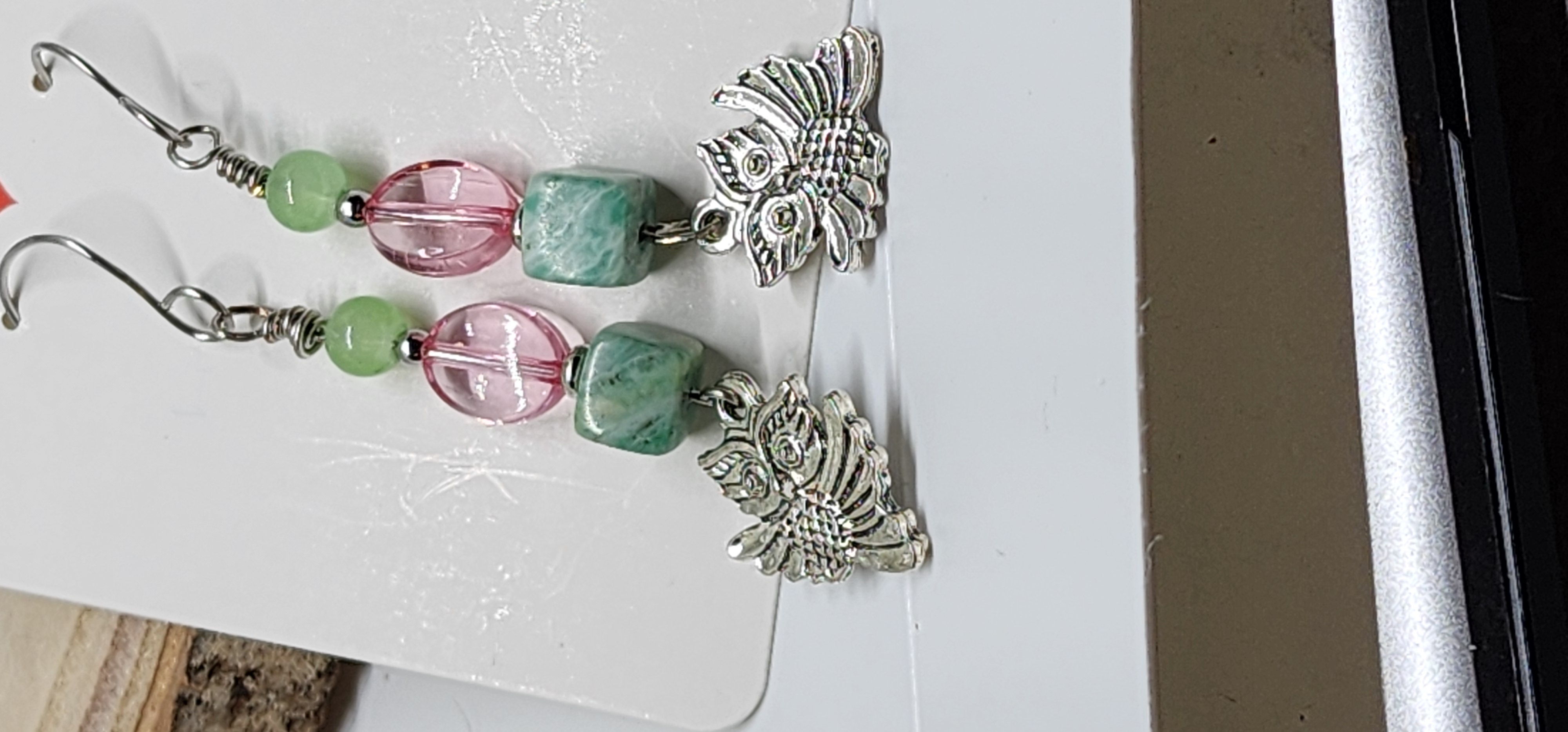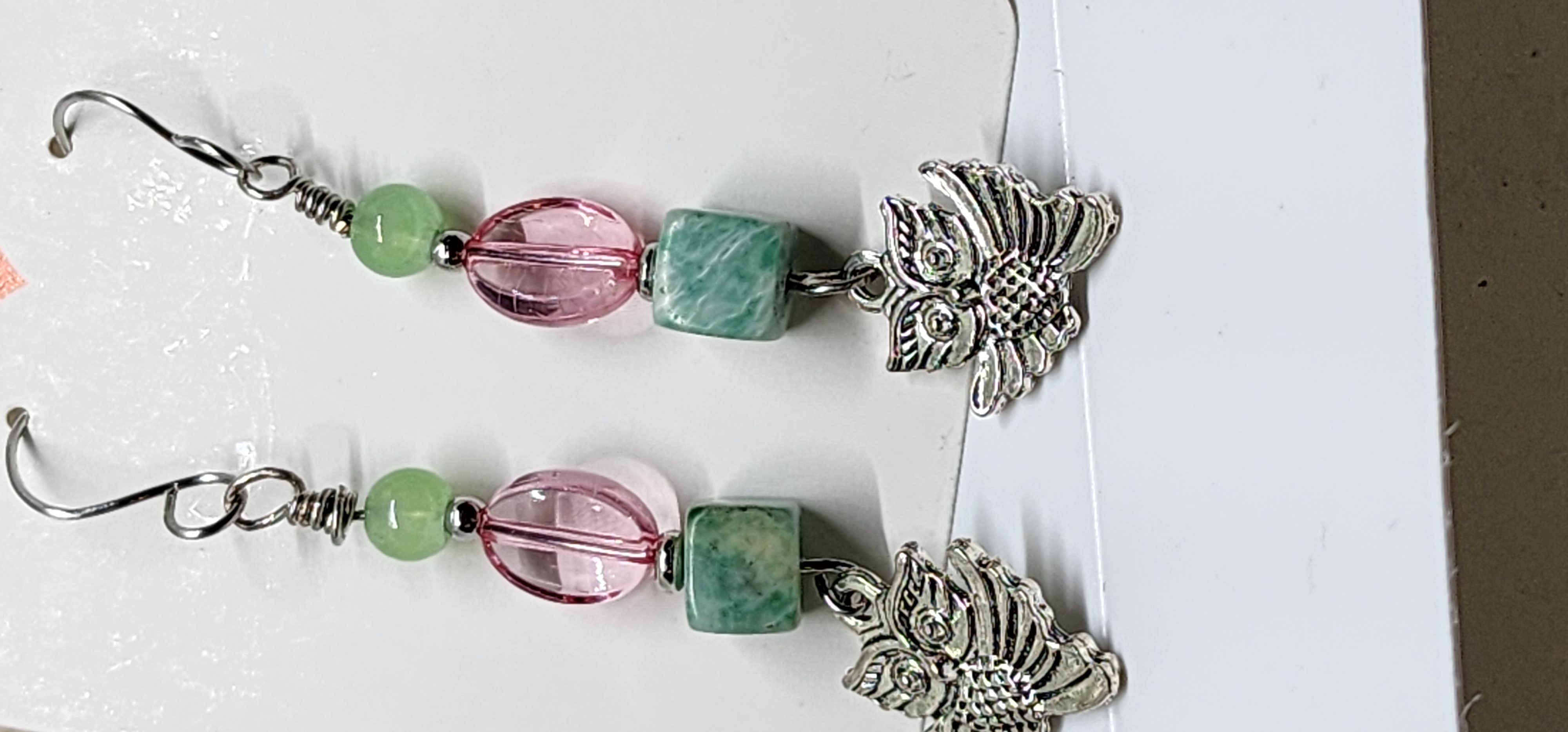These earrings are carefully handcrafted by me using individually selected beads and silver-tone findings. Each bead is hand-assembled onto durable wire, wrapped securely for strength and longevity, then finished with detailed owl charms and fishhook ear wires. Every pair is made with attention to detail, ensuring quality, durability, and a beautifully balanced design.