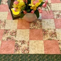 The quilting is done on my professional long-arm quilting machine using a complimentary floral pattern that matches the theme of this quilt. The binding/edge is double folded and hand sewn with mitered corners for the perfect finish!