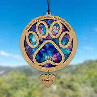 Celebrate the life of a cherished loved one with this personalized handmade memorial keepsake, designed to evoke the elegance of a stained glass window. This heartfelt piece comes with a 9" stand, making it ideal for display on a shelf or table, and serves as a meaningful sympathy gift for someone special.