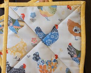 They are made with cotton fabric and cotton blend batting. Each coaster measures 4 1/2" square and are all unique! I make several at one time so fabric placement may vary somewhat from picture. These will protect all of your surfaces!