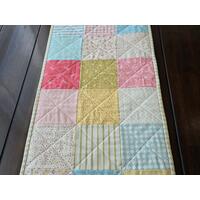 Handmade quilted table runner/Spring/Easter/ Patchwork/Pink Binding