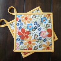 Add a touch of home-made charm to your dining table with this beautiful table runner. The patchwork floral design make it a unique addition to any setting. The cotton and cotton blend material ensure durability, while the blue, green, yellow, pink and white colors bring a delightful pop of color to your table. This table runner is perfect for any occasion and is sure to impress your guests.  Machine sewn binding.  Measures appx. 14" x 40".  Spot clean recommended but can be machine wash gentle/cold.  Lay flat to dry. Hot Iron if necessary.