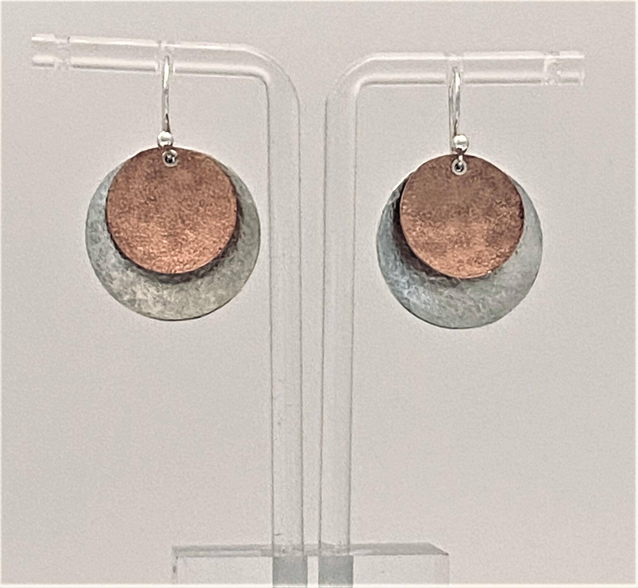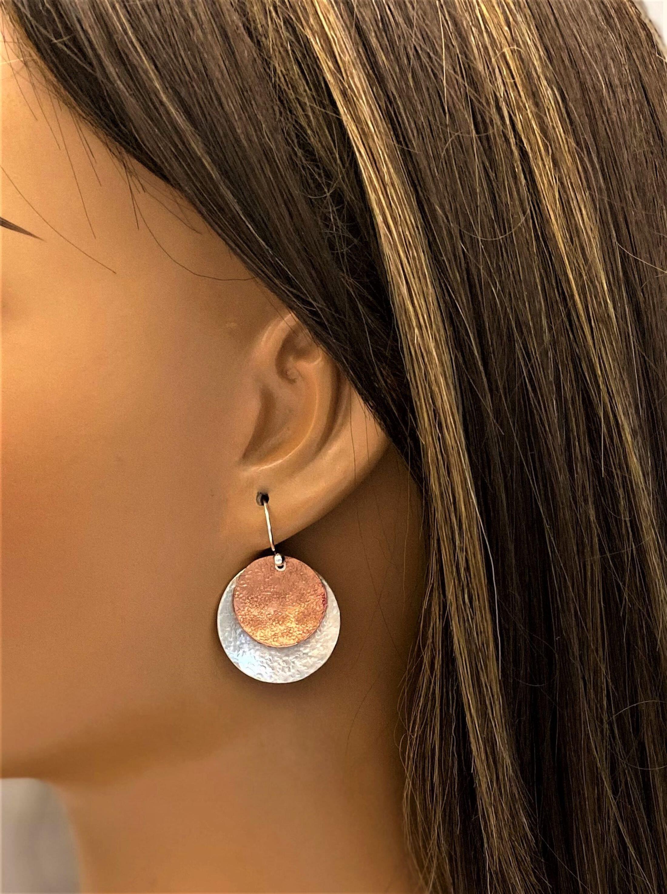 I crafted these handmade mixed metal earrings using copper and sterling silver sheet.
