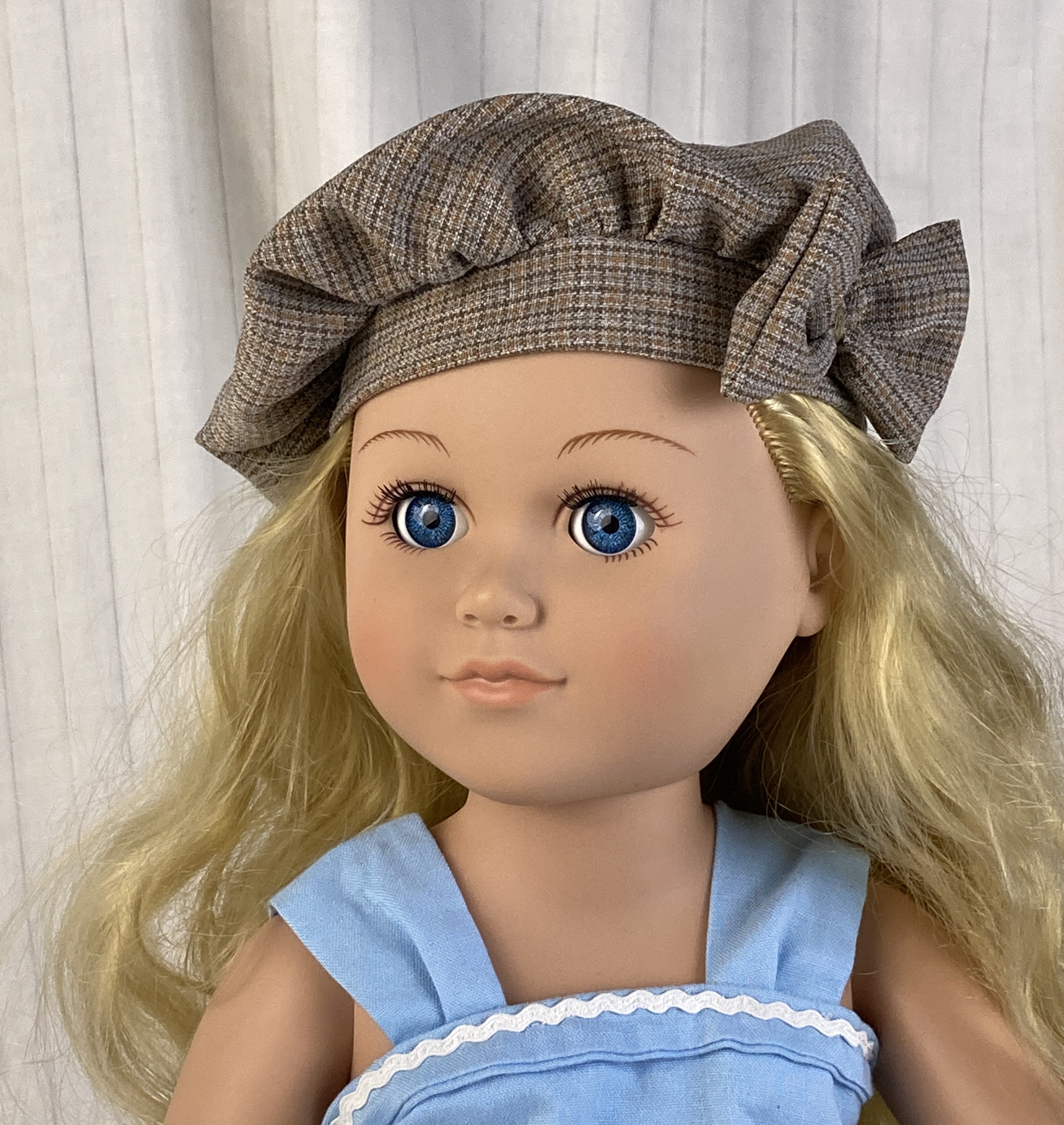 Your 18 inch doll will be ready to greet the cooler weather in this fashionable dupplin check beret with bow accent!