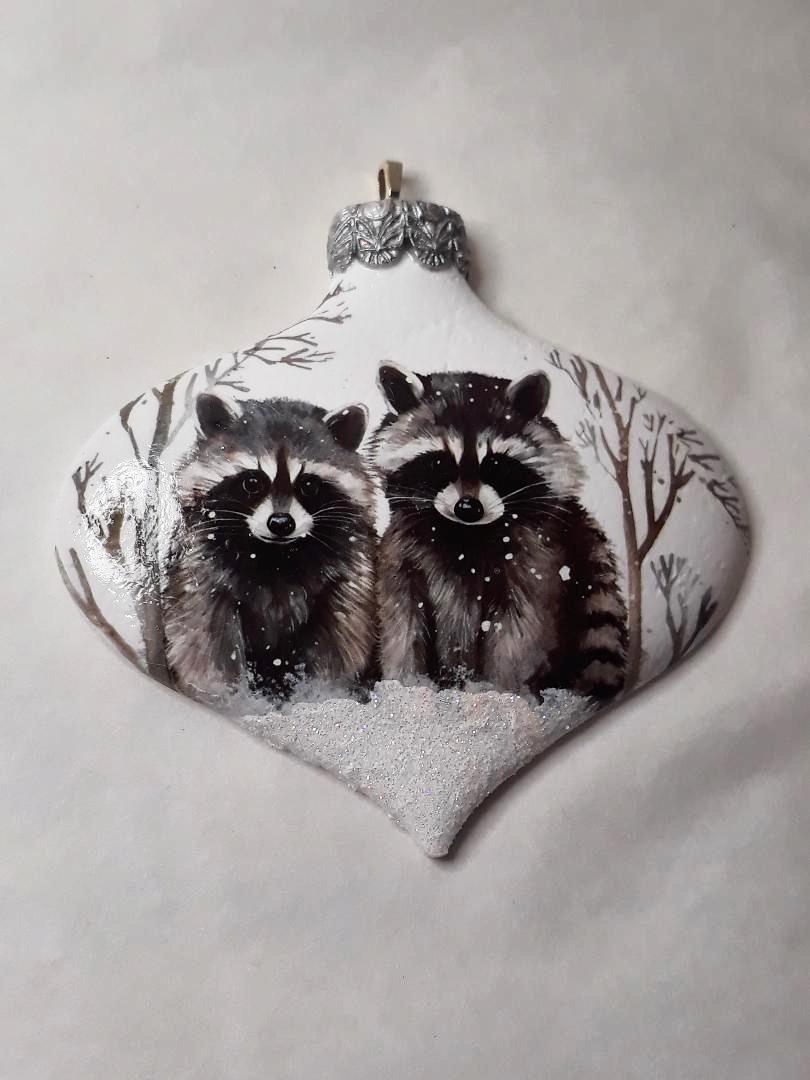 Handmade Vintage Style Winter Raccoon Scene Christmas Ornament