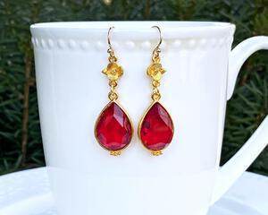Add a sweet and playful touch to your outfit with these handmade wire cherry earrings! Each pair is carefully crafted with gold wire and vibrant red cracked beads, creating a delicate yet eye-catching cherry design. Perfect for fruit lovers, quirky jewelry fans, or anyone looking to add a pop of color to their wardrobe. Each pair is made with love and attention to detail, ensuring you receive a unique and high-quality piece. Measuring approximately 1.5 inches in length. The earrings are paired with handmade ear wires that are nickel-free, lead-free, and hypoallergenic. Ensuring comfort and suitability for sensitive ears. Whether you’re shopping for yourself or a loved one, these cherry earrings are a charming addition to any jewelry collection!