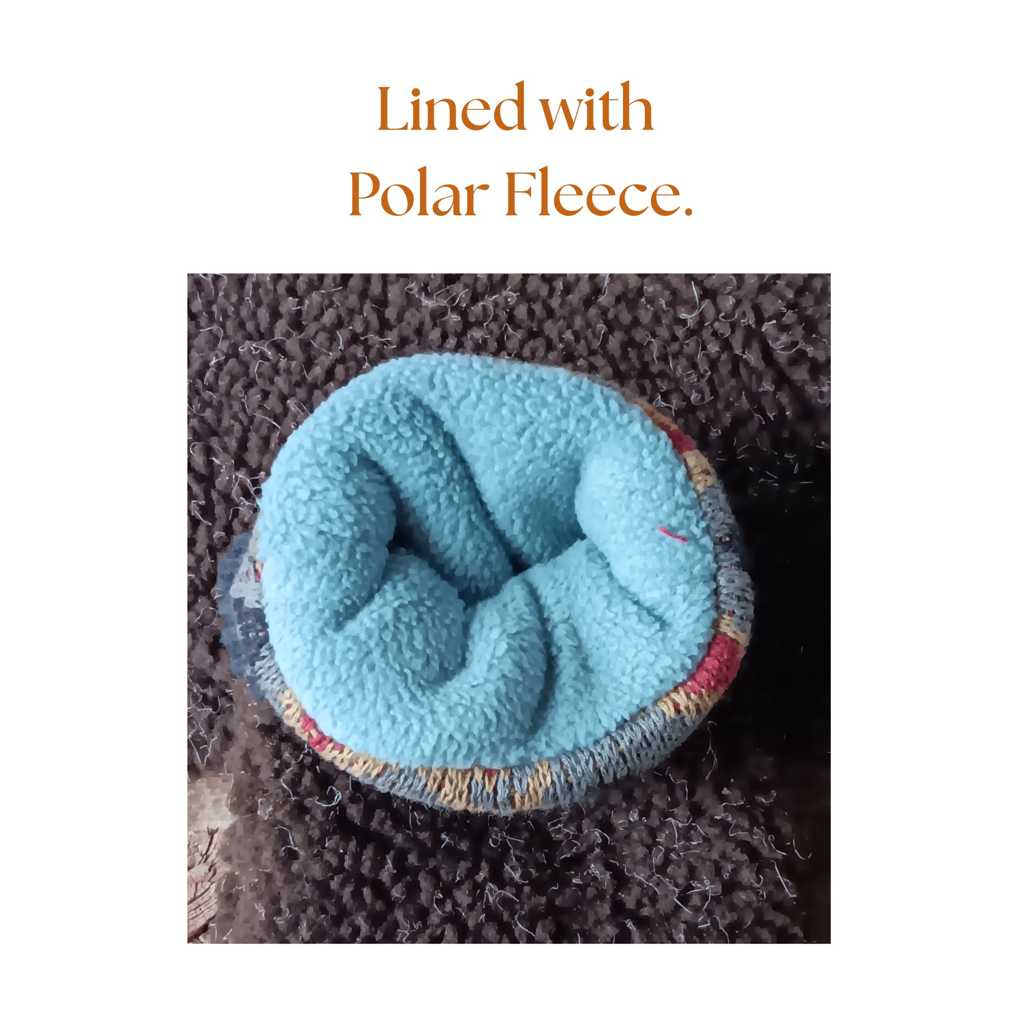 • Outer Shell: Upcycled fluffy brown fleece for durability and warmth.
