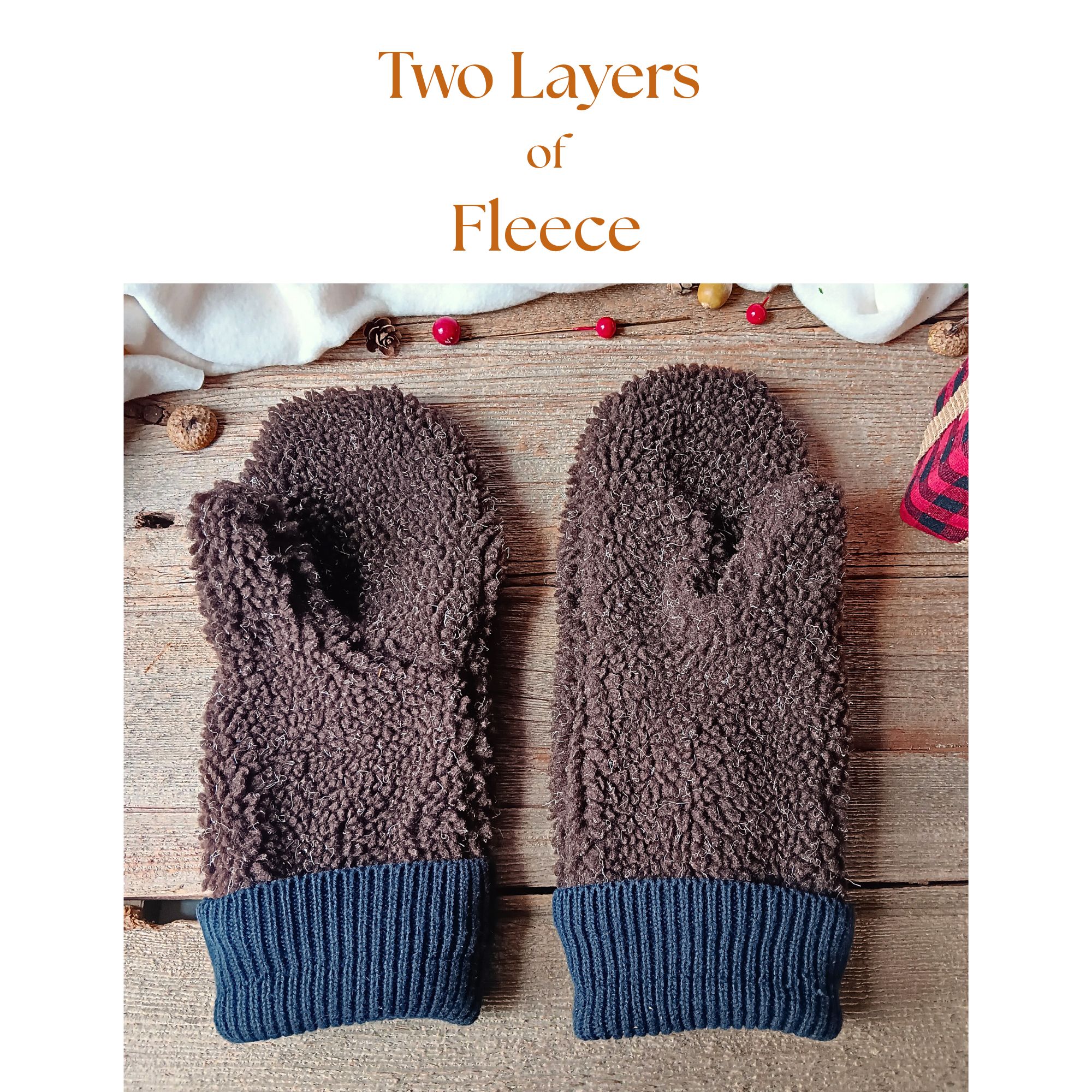 Women’s Brown Fleece Mittens | Double Layered Cozy Winter Gloves