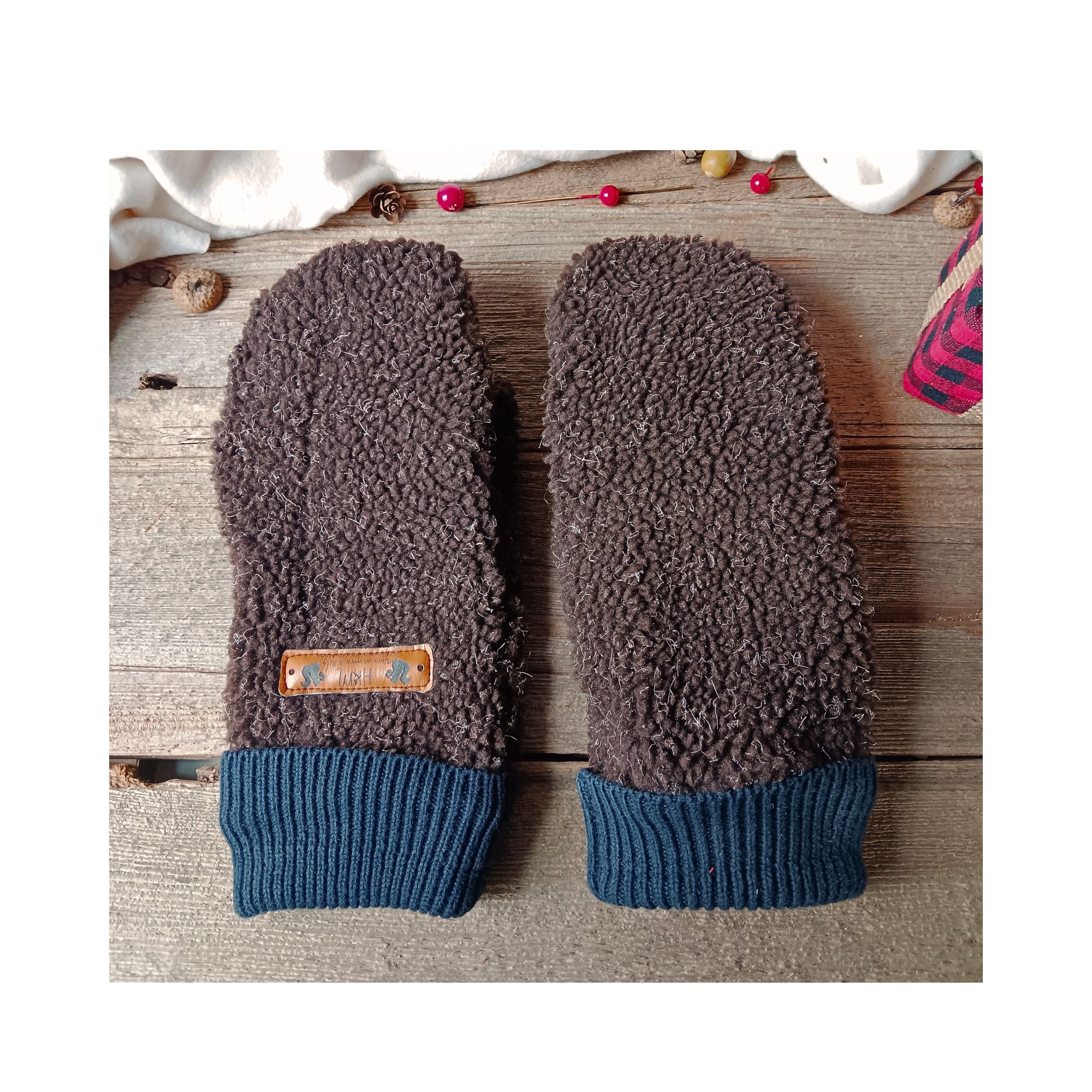 Each pair is crafted from upcycled fleece jackets and pullovers, carefully selected for quality and texture.