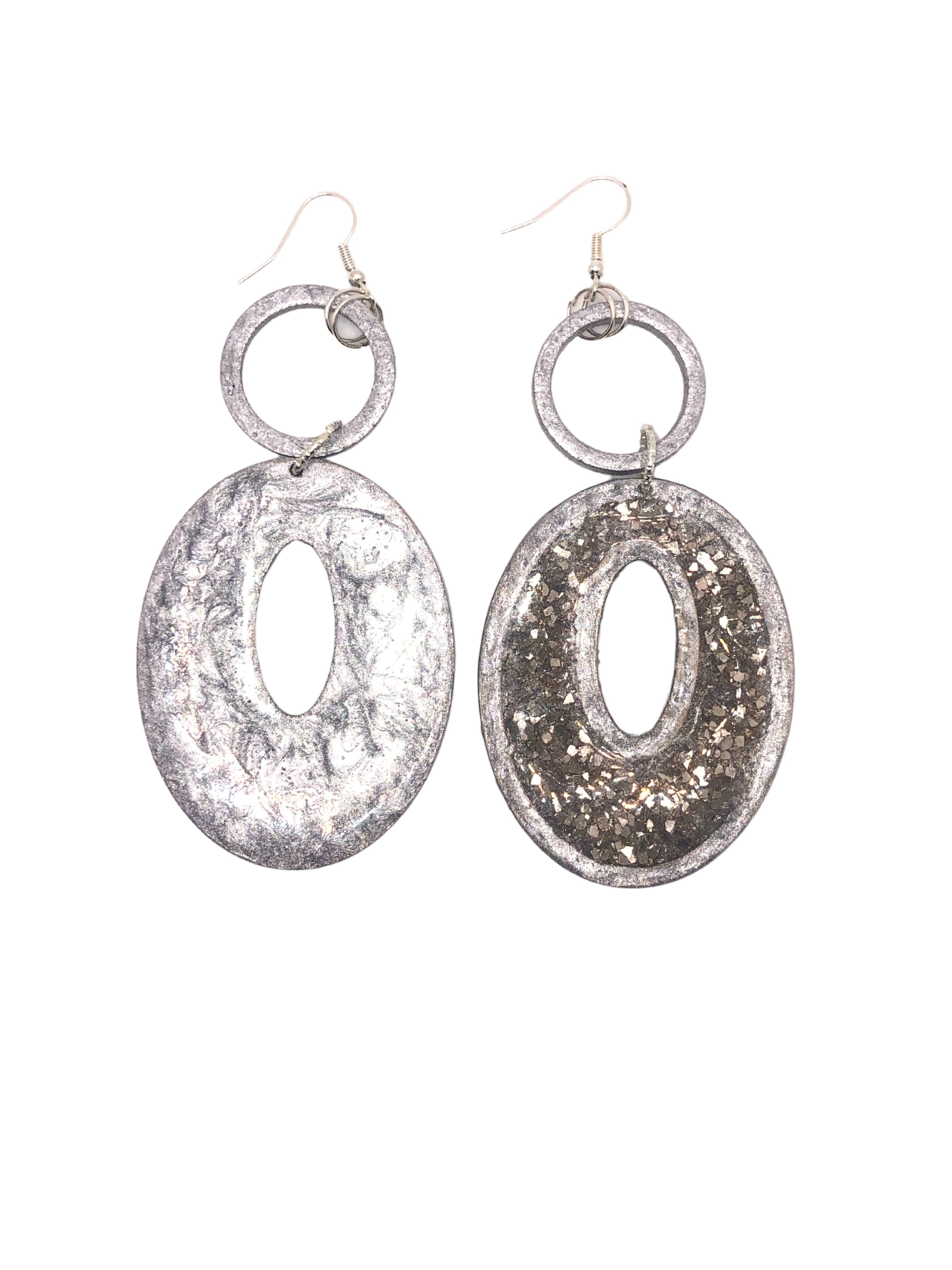 HANDMADE WOOD AND RESIN EARRINGS SILVER AND SILVER OR RED AND GOLD