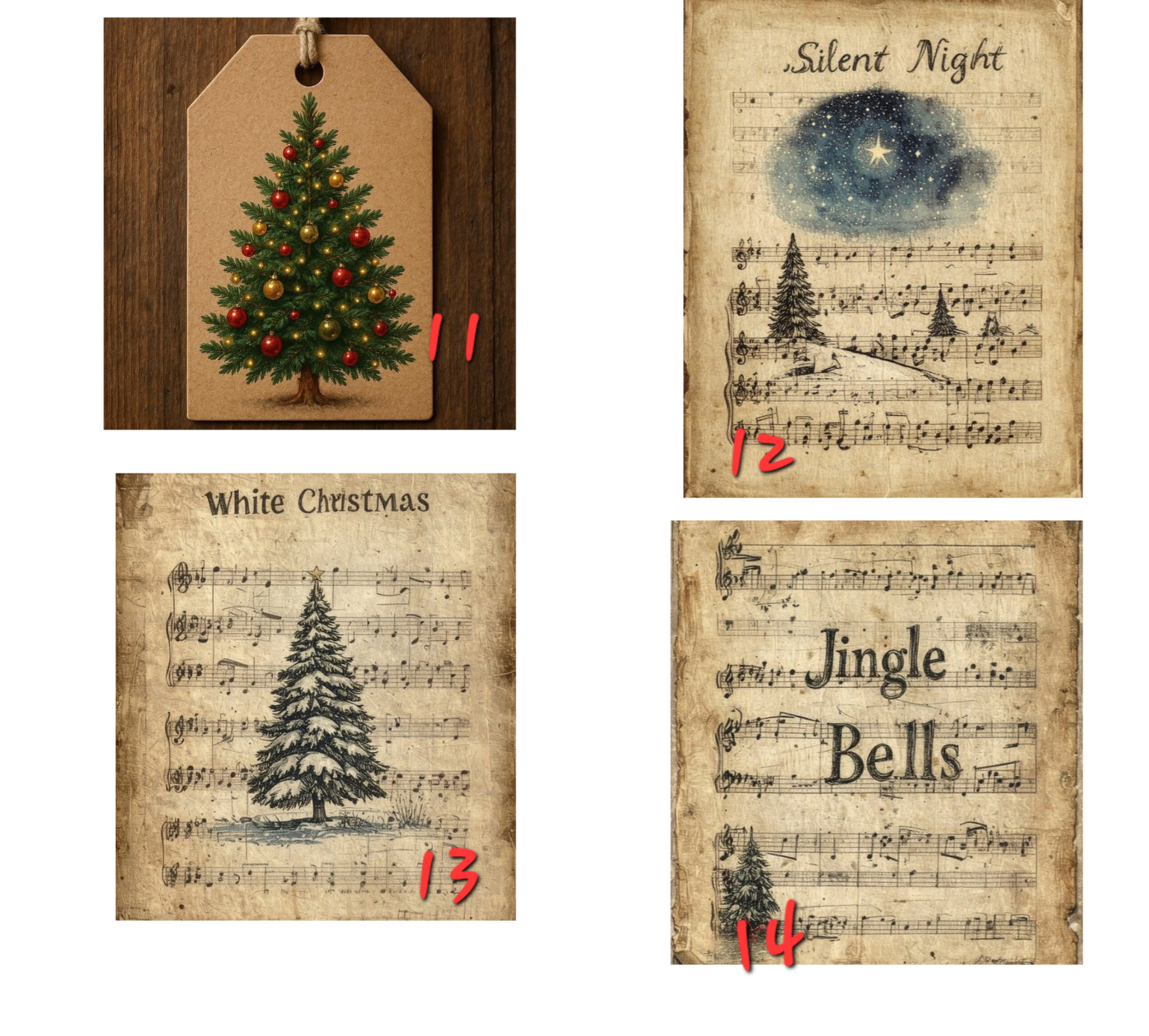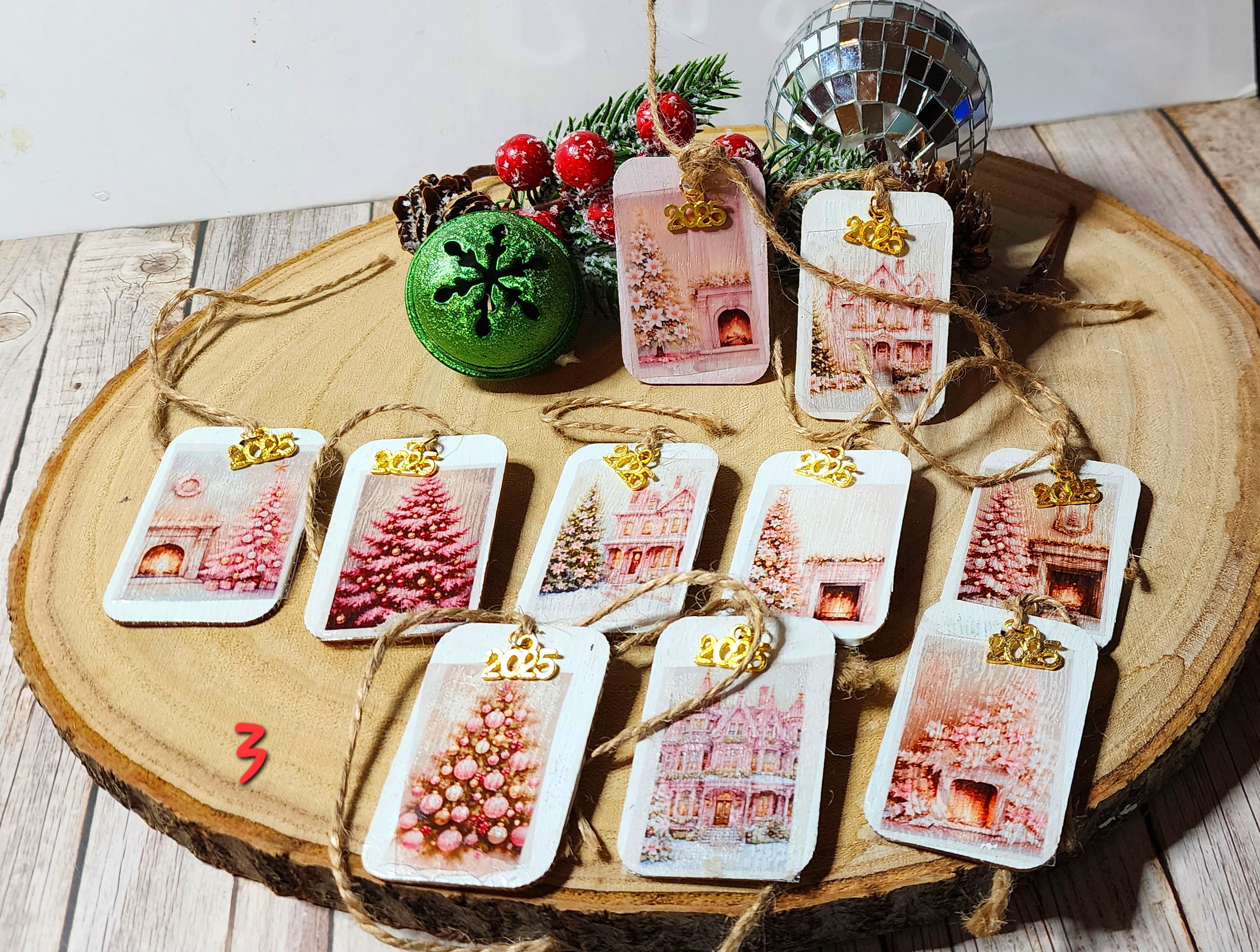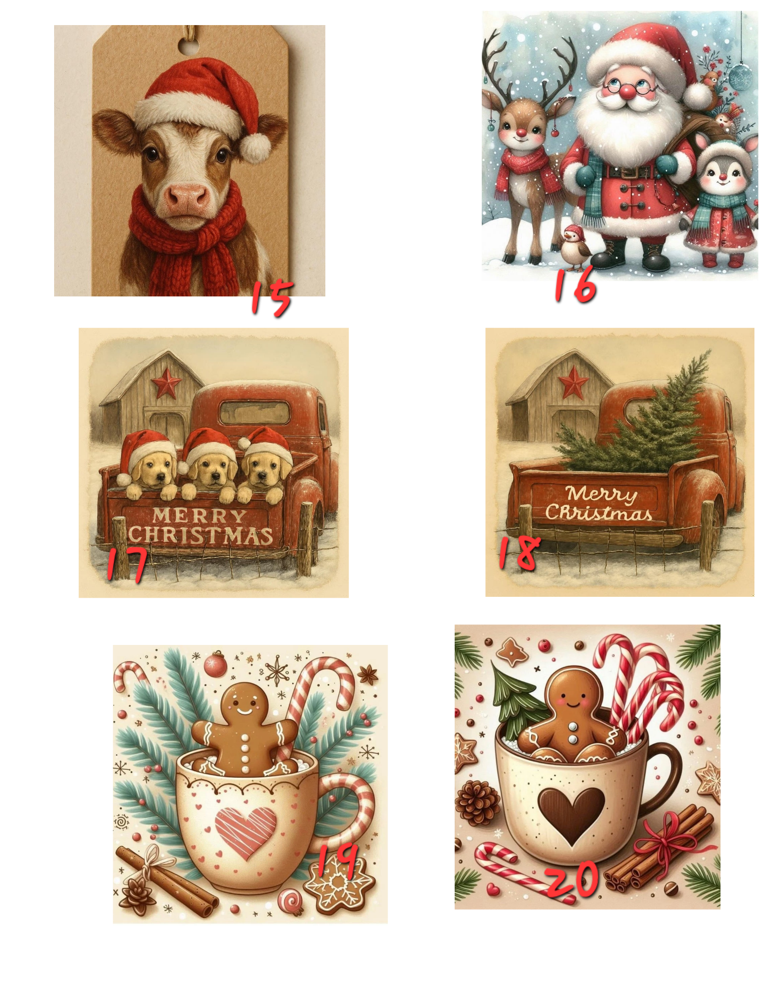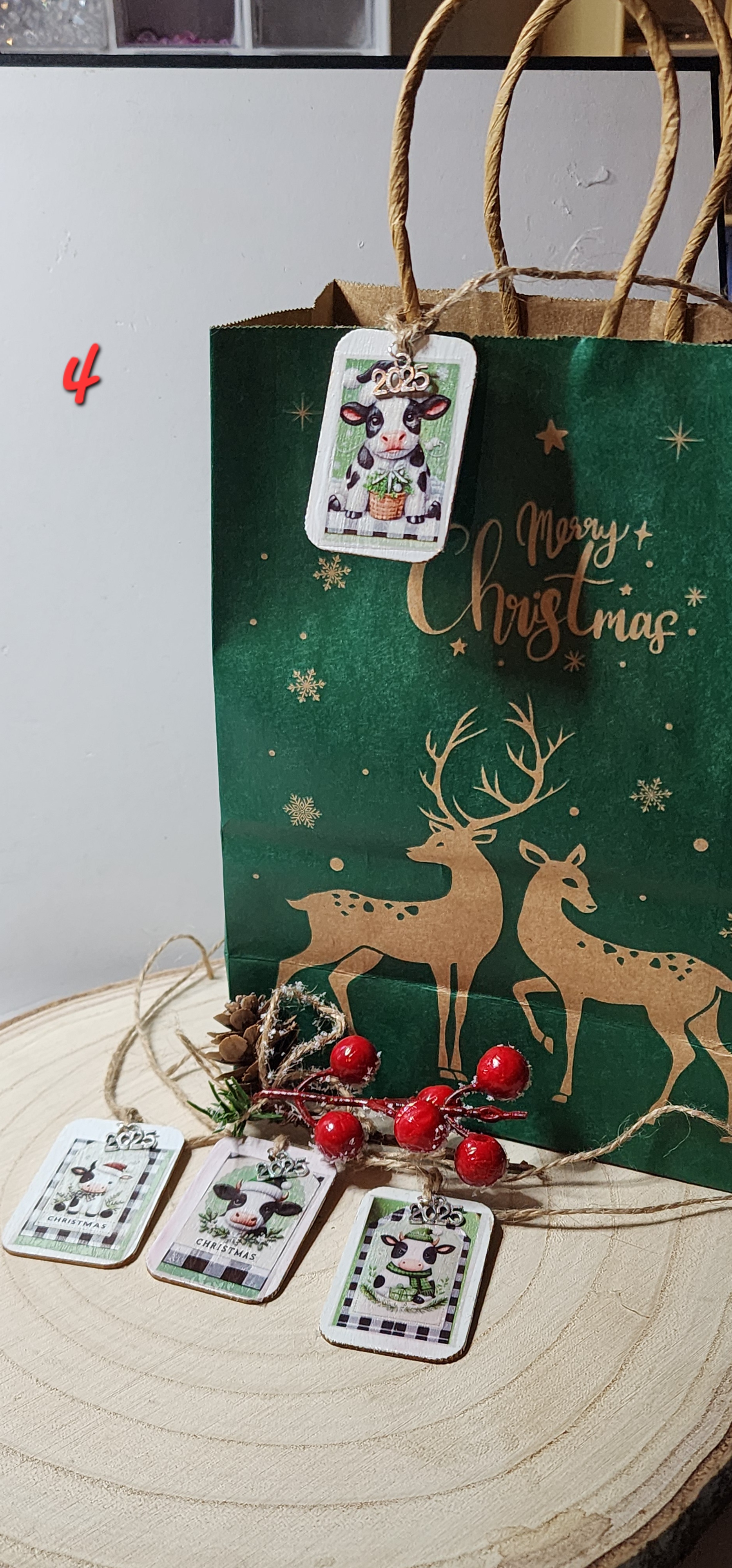 Add a touch of whimsy and nostalgia to your holiday gifting with these handcrafted Christmas gift tags. Each tag features a cheerful cow dressed in festive attire, Santa, Pink Christmas and others—whether cozy in a winter sweater, holding a present, or celebrating the season with twinkling details.