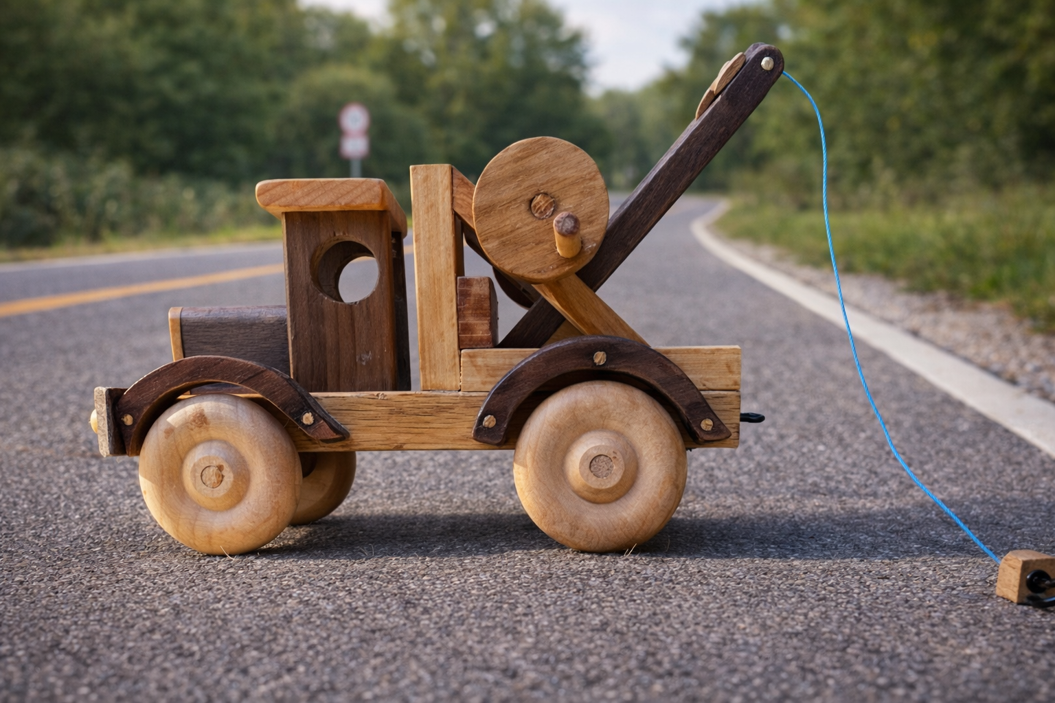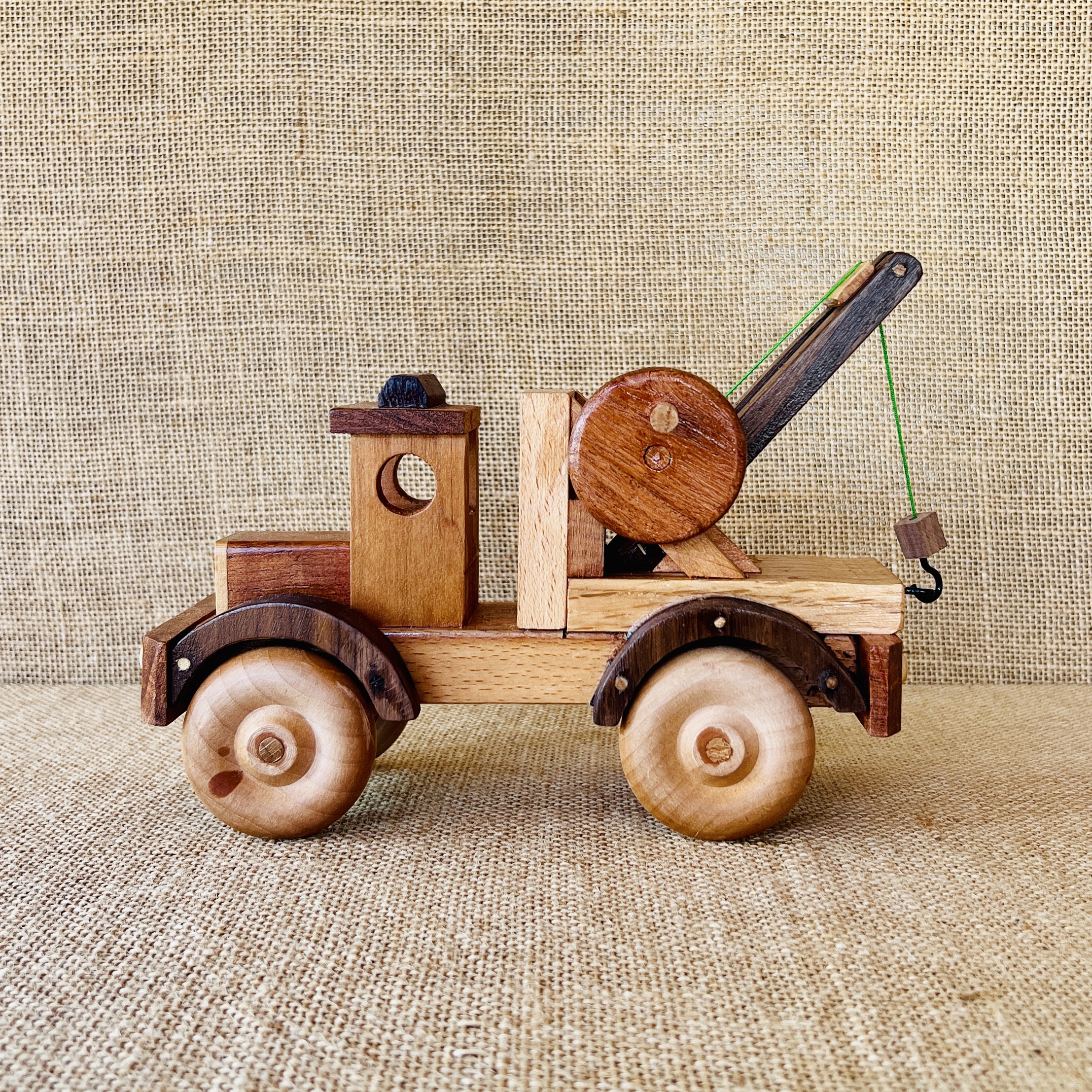 this tow truck is made out of Mesquite, Walnut, Beech, and Oak woods.