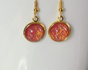 Half-Inch Fiery Red Resin Swirl Earrings with Gold Bezel