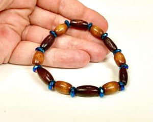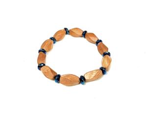 Wood Beaded Bracelet with Blue Hematite Spacers