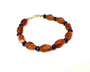 Rosewood Twist Beaded Bracelet with Blue Hematite Spacers
