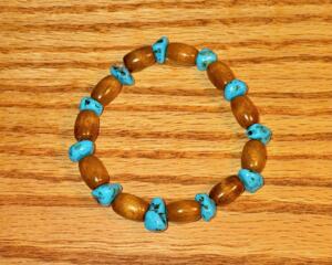 Bracelet With Wood Barrel Beads and Turquoise Colored Nuggets