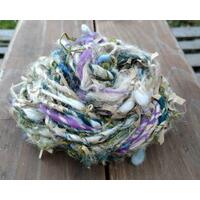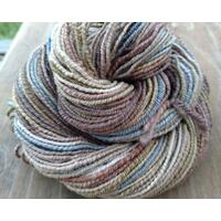 This yarn is merino soft with the added silkiness of bamboo. It's like calm blue water with a cool breeze that is gently pushing fluffy white clouds across a clear blue sky. It was heaven to spin!