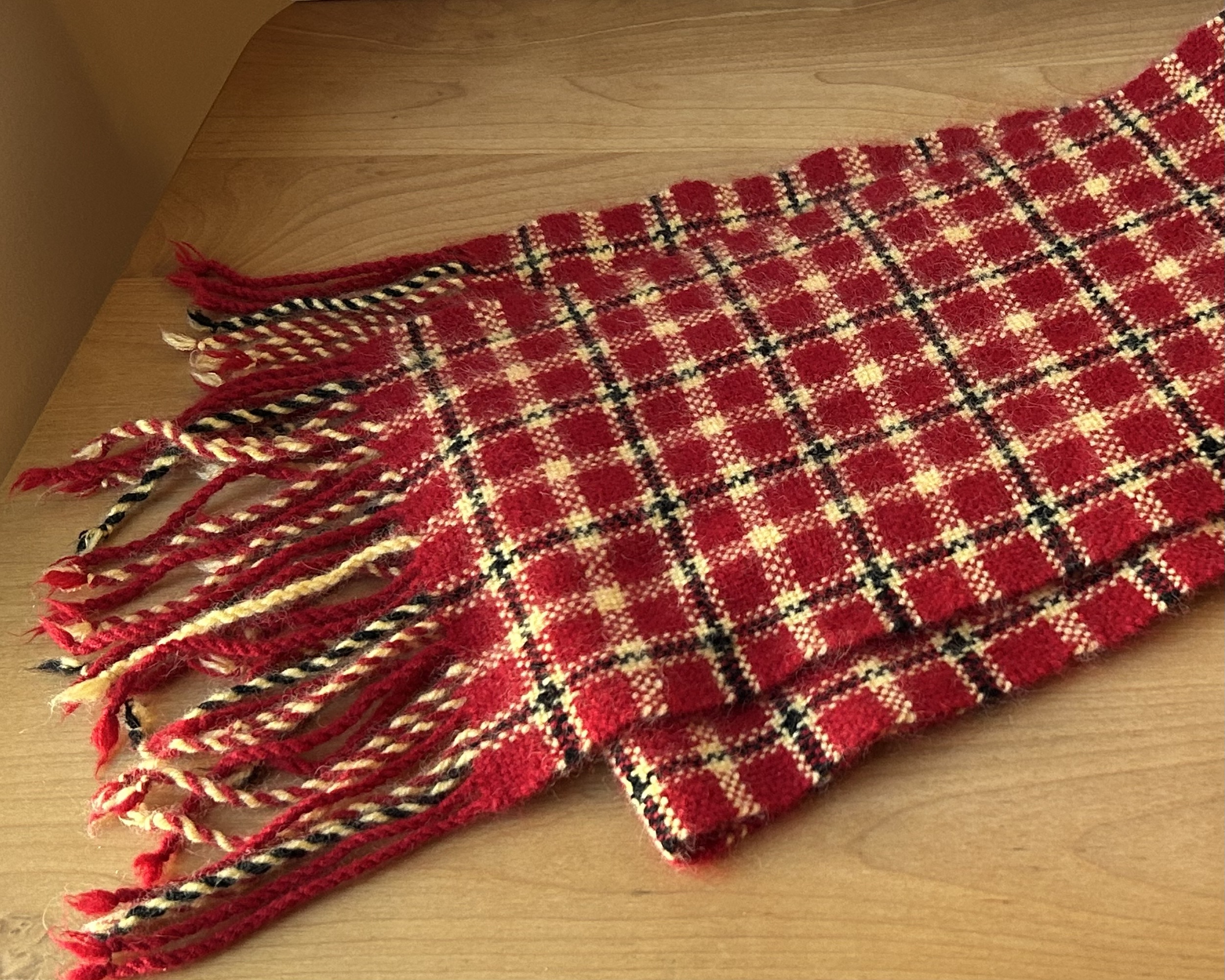 Three strong colors make up this tartan-like plaid that was a dream to weave. Red, black and yellow cashmere yarns created the softest, most drapey scarf ever. I can't wait to make another one.