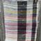 More upcycling! Nothing is wasted in the weaving studio. This multicolored piece is created with random cotton and linen fibers, tied together to make a new weft. Good for a side table, or perhaps your nightstand.